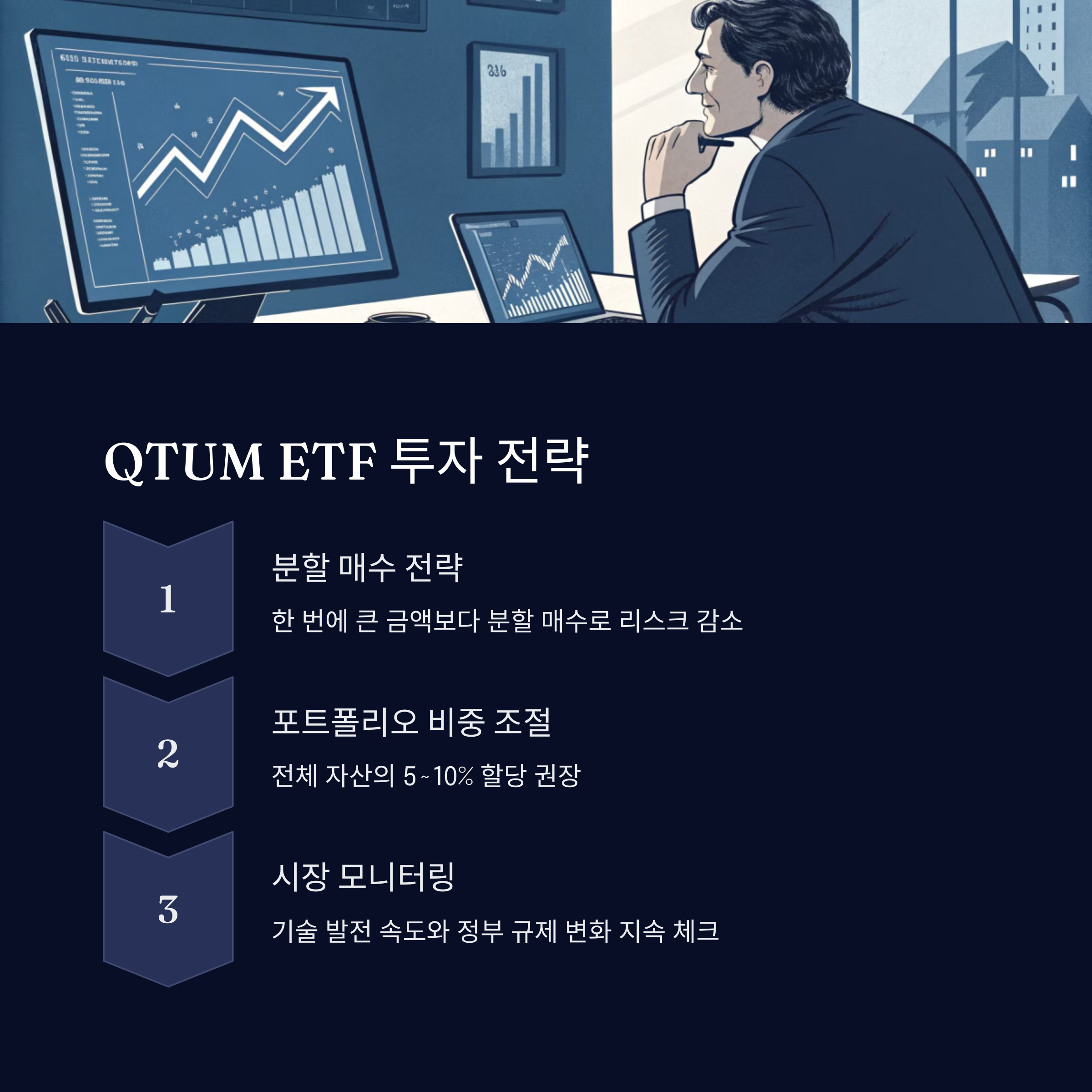 - 포트폴리오 내 비중 조절: QTUM ETF에 전체 자산의 5~10%를 할당하여 리스크를 관리하는 것이 바람직합니다.
