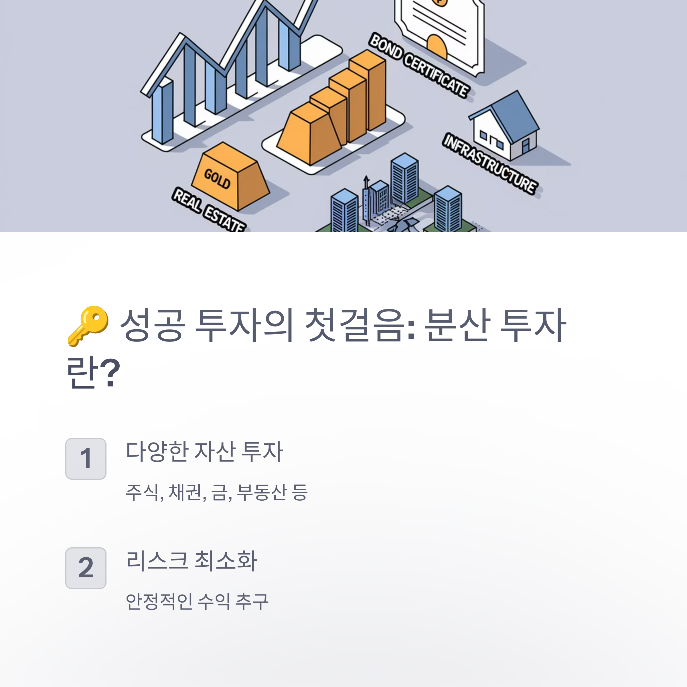 | 분산 투자 | 다양한 자산군에 분산 투자함으로써 위험을 최소화하는 전략이 필요합니다. |