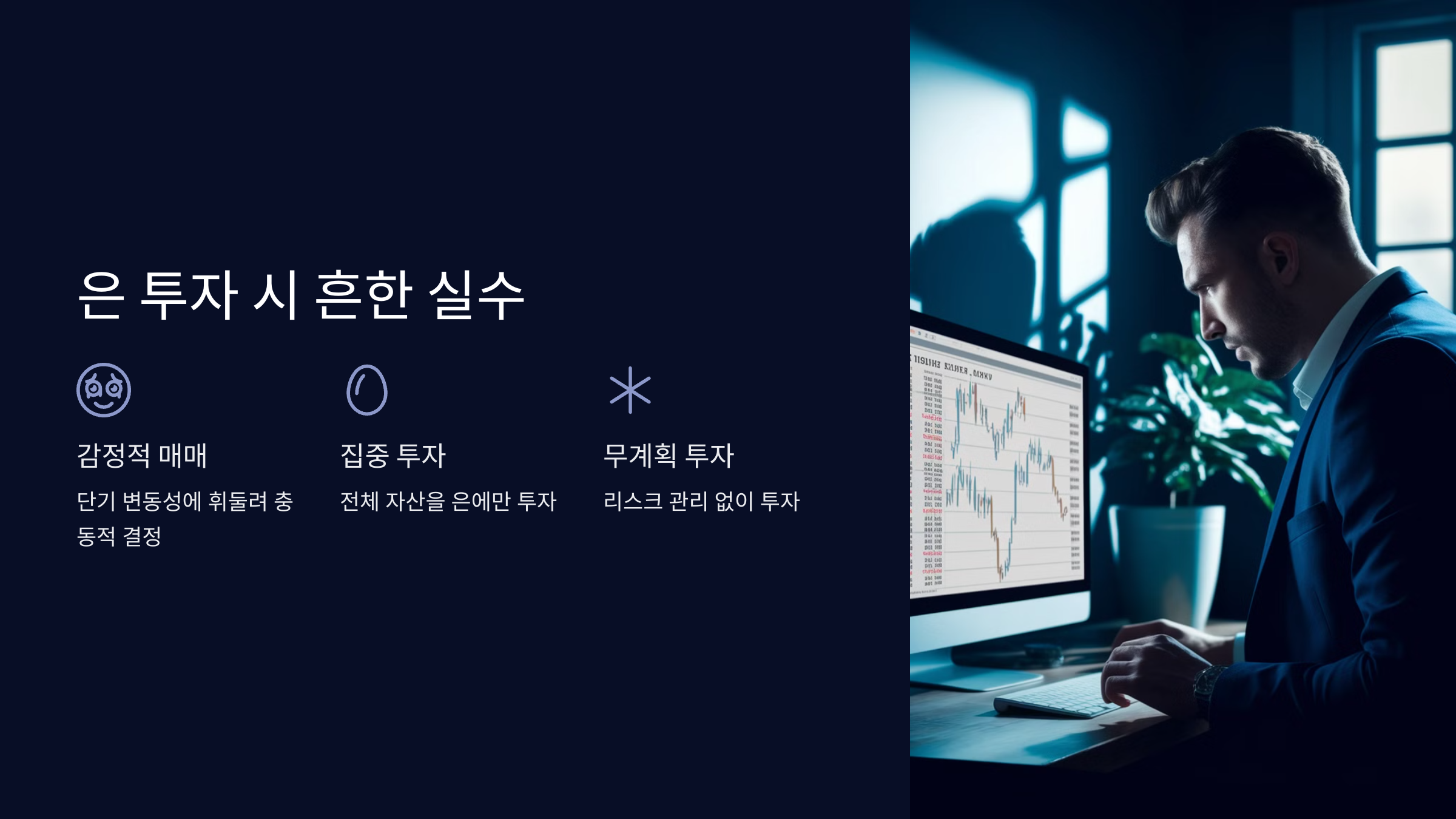 은(銀) 투자, 제대로 알고 계신가요? 작은 실수 하나가 큰 손실로 이어질 수 있습니다. 고수들은 어떻게 리스크를 줄일까요?