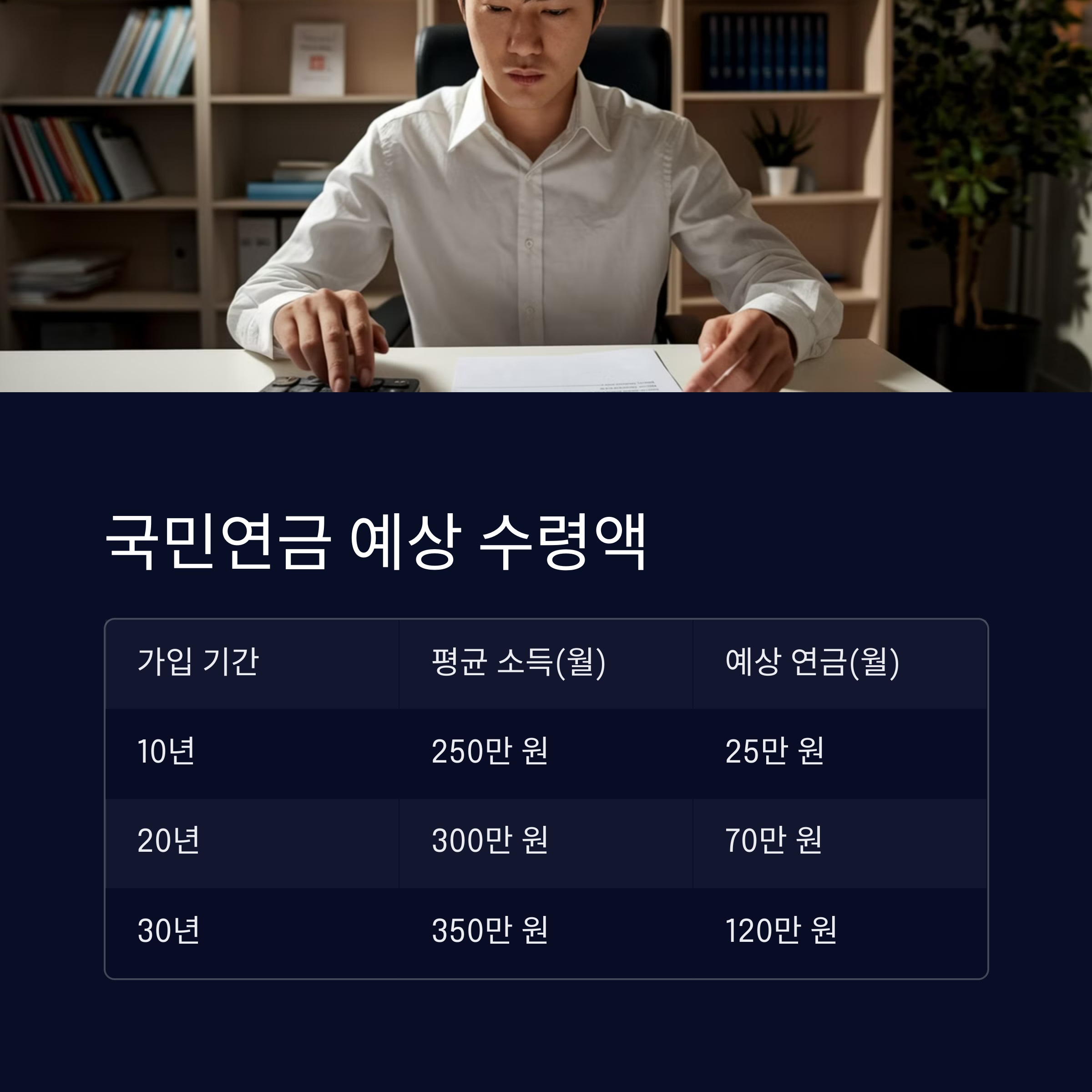 • 국민연금 + 개인연금 가입 시: 월 200~300만 원 가능