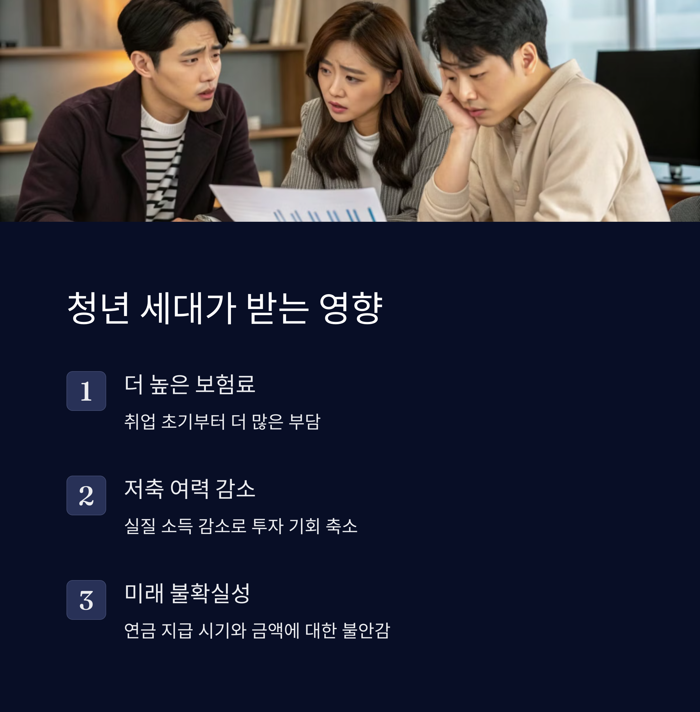 - 취업 초기부터 더 높은 보험료 납부 부담