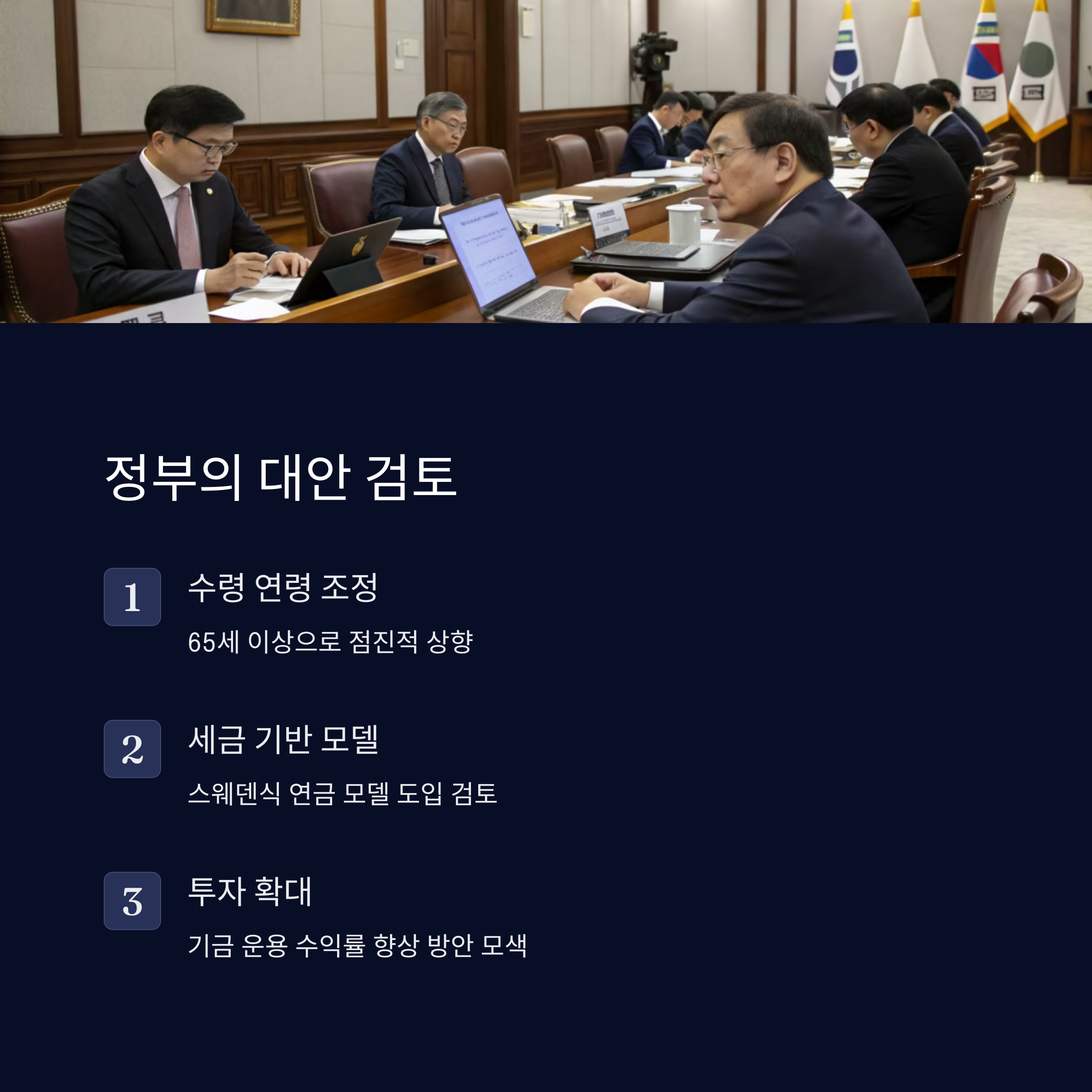 • 세금 기반 연금 모델 도입 검토 (스웨덴식 모델)