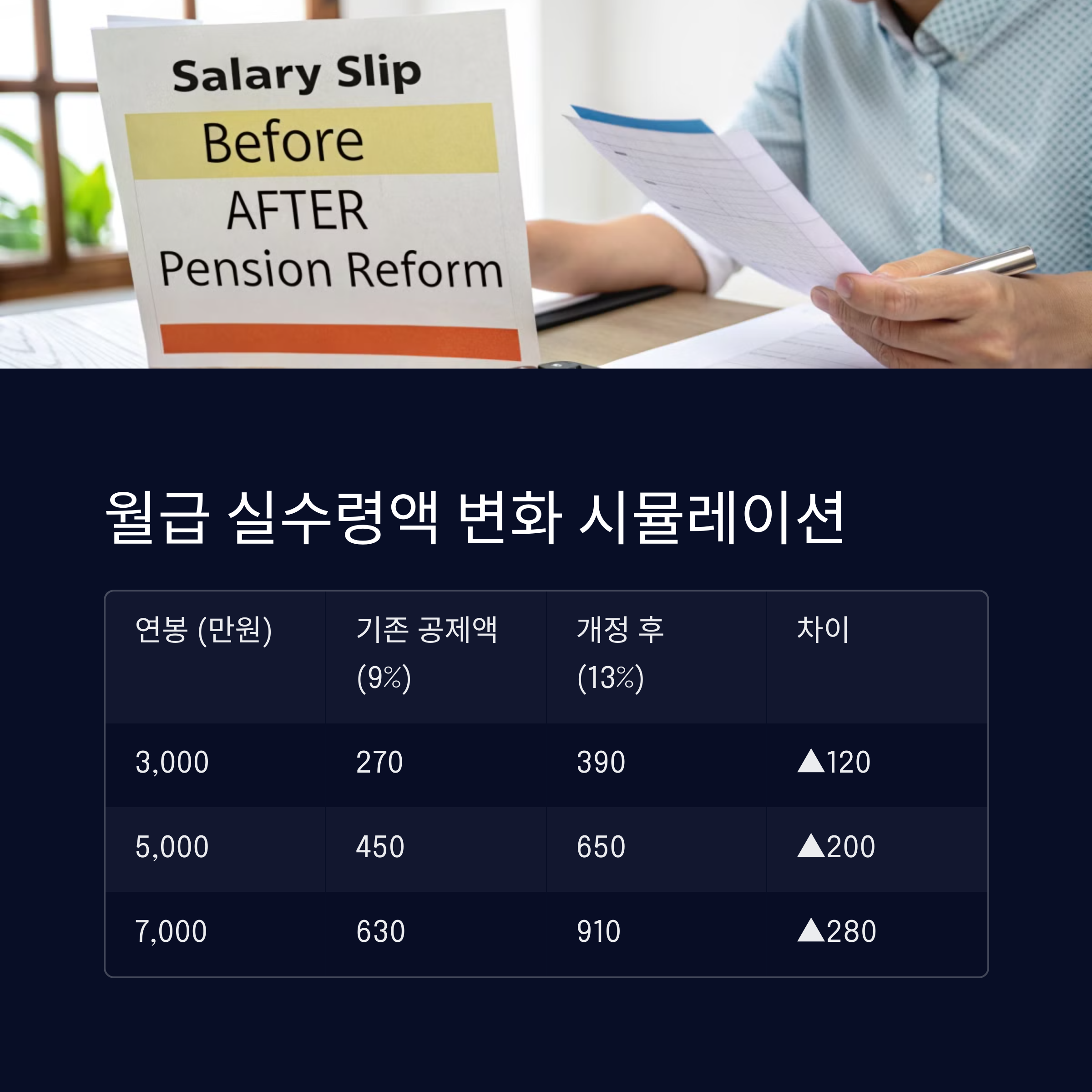 국민연금 개혁안 보험료율 13% 인상? 내 월급 실수령액 얼마나 줄어들까?