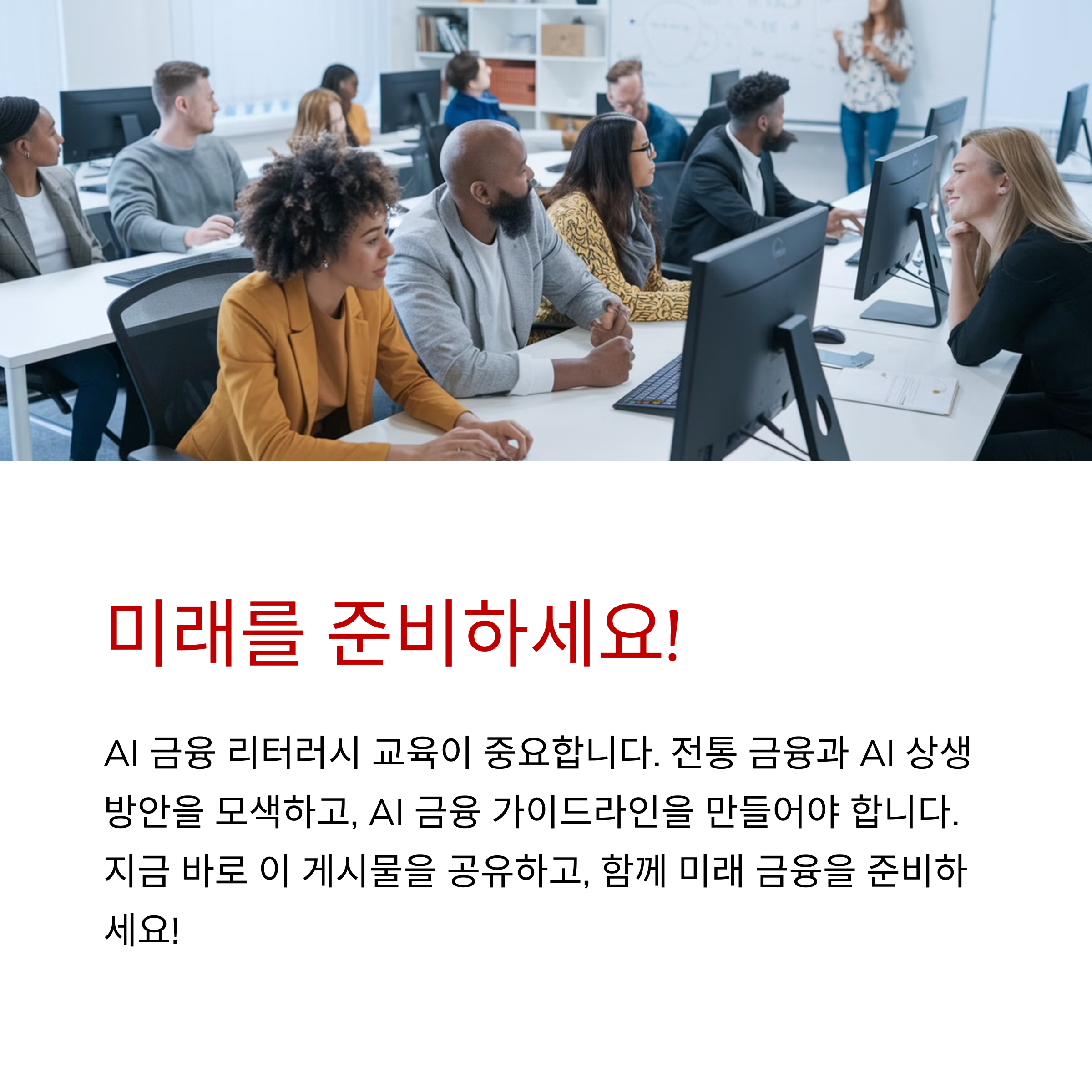 금융 시장은 AI 혁명을 통해 빠르게 변화하고 있습니다. 이 변화를 기회로 만들 것인가, 아니면 뒤처질 것인가는 우리의 선택에 달려 있습니다. AI 기반 금융 전략을 이해하고 활용하는 것이 미래 금융의 핵심이 될 것입니다.