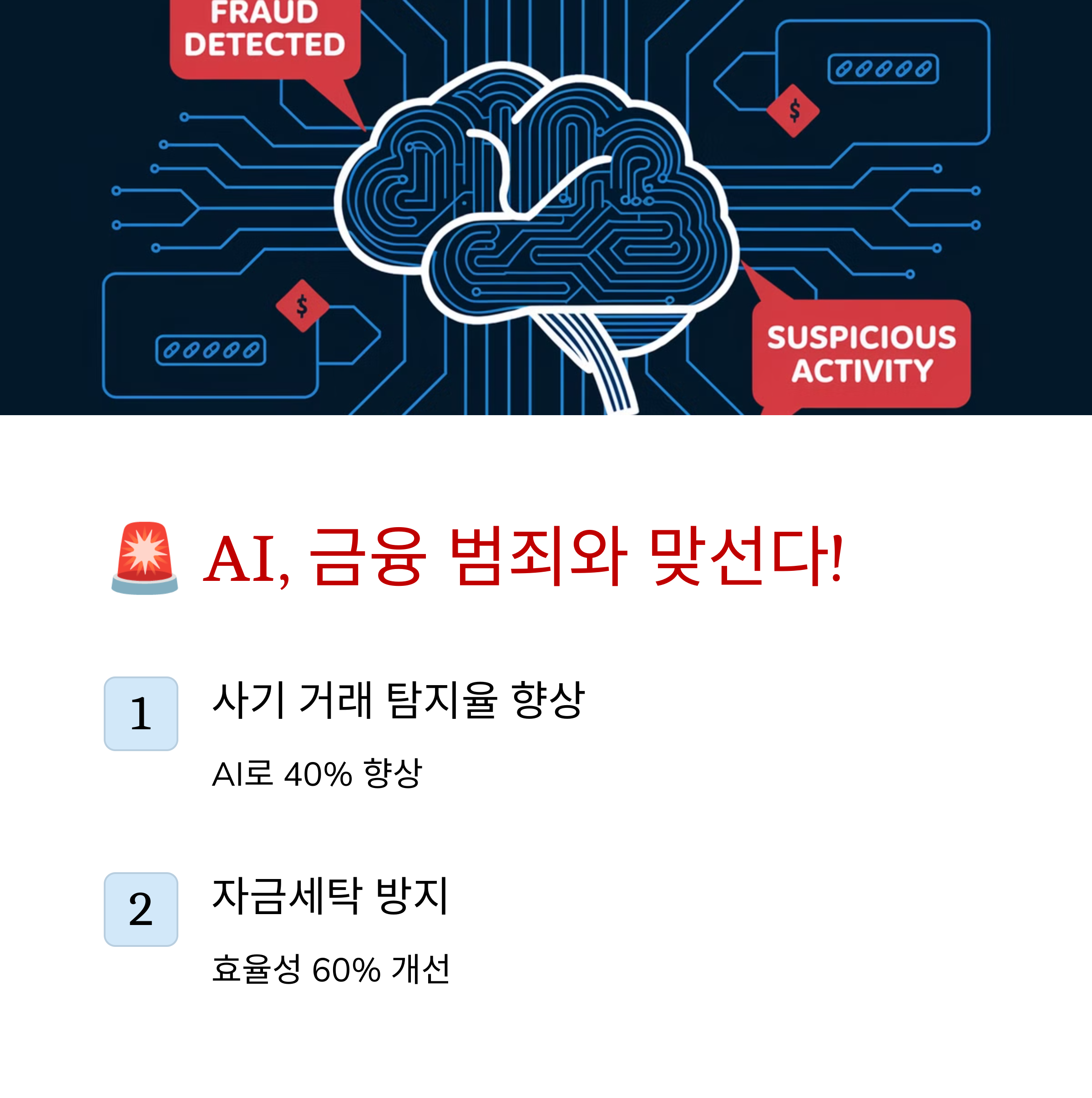 | 리스크 관리 | AI가 금융 시장의 위험 요소를 사전에 감지하고 예방할 수 있습니다. |