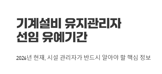 기계설비 유지관리자 선임 유예기간에 대해 자세히 알아보세요. 2026년 현재 적용되는 법규와 앞으로의 변화, 그리고 시설 관리자들이 놓치지 말아야 할 핵심 정보를 친근하고 명확하게 전달합니다.