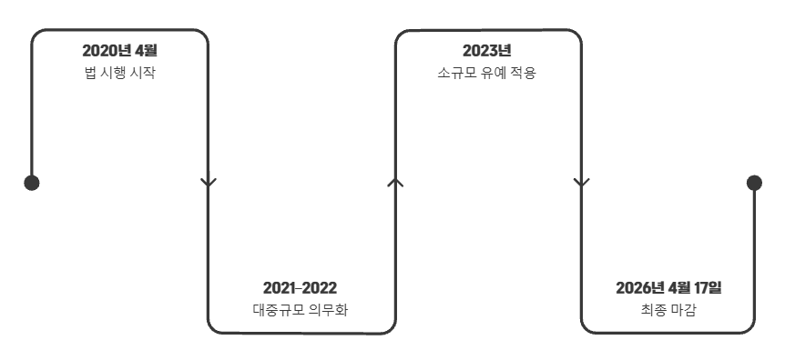 이 유예기간이 끝나면 이제는 정말 예외 없이 법적 의무가 적용되기 때문입니다.