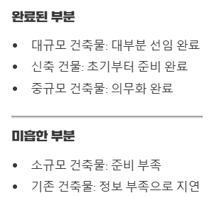 그런데 사실, 소규모 건축물이나 기존 건축물 중에서는 아직 준비가 미흡한 곳들도 꽤 많다고 해요.