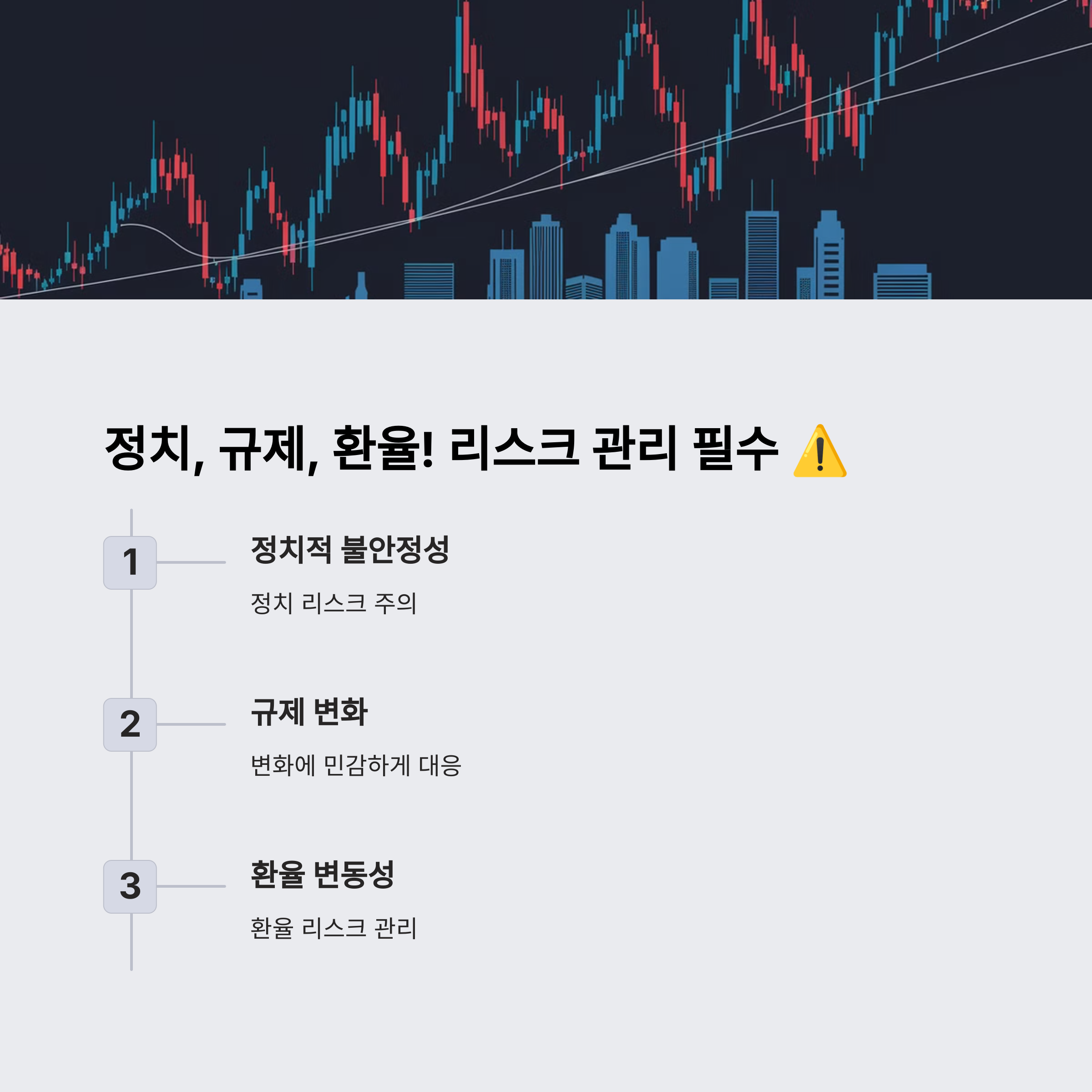 리스크 관리를 위해서는 다변화된 포트폴리오를 구성하는 것이 중요합니다. 또한 정치적 안정성과 법적 규제, 환율 변동성을 고려해 투자 국가를 선정해야 합니다.