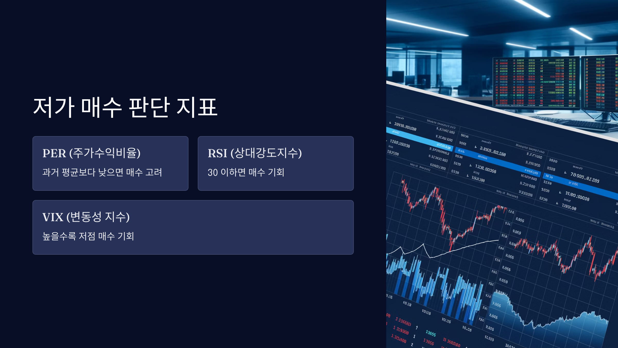 이러한 지표들이 역사적 저점 근처에서 움직인다면, 분할 매수를 고려할 만한 시점일 수 있습니다.