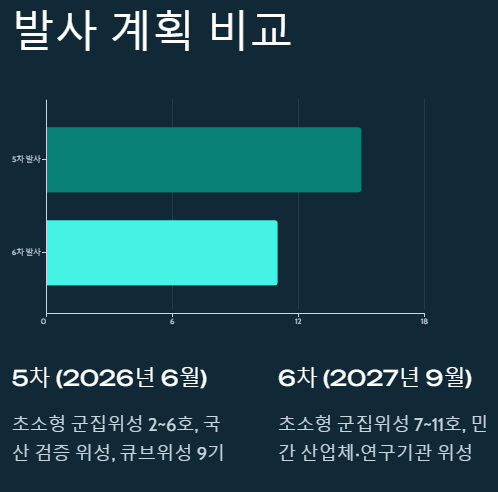 📊 누리호 5차, 6차 발사 계획 한눈에 보기