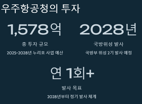 3. 우주항공청, 1,578억 원 투자: 2025~2028년 누리호 추가 발사 및 고도화 사업에 대규모 예산 투입.