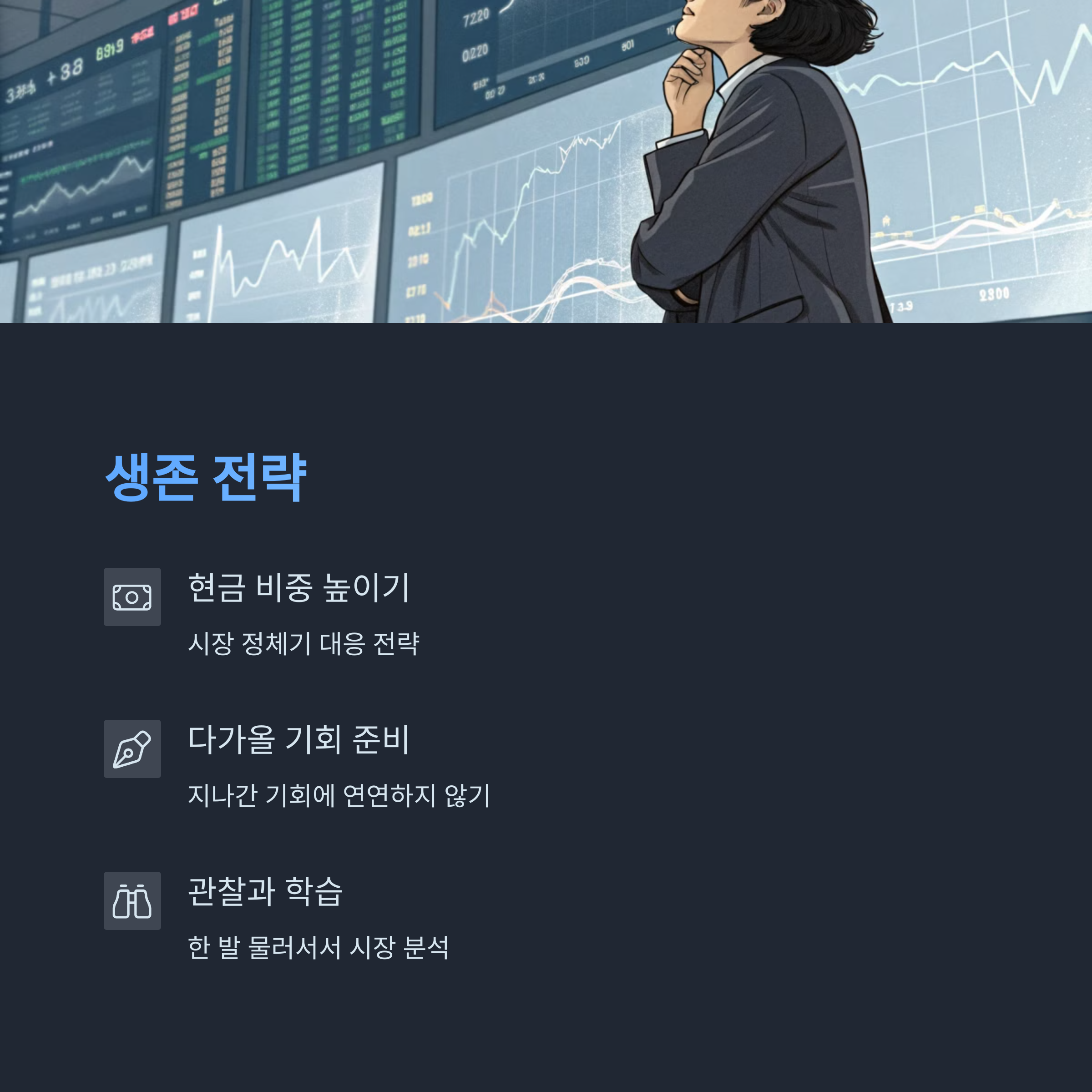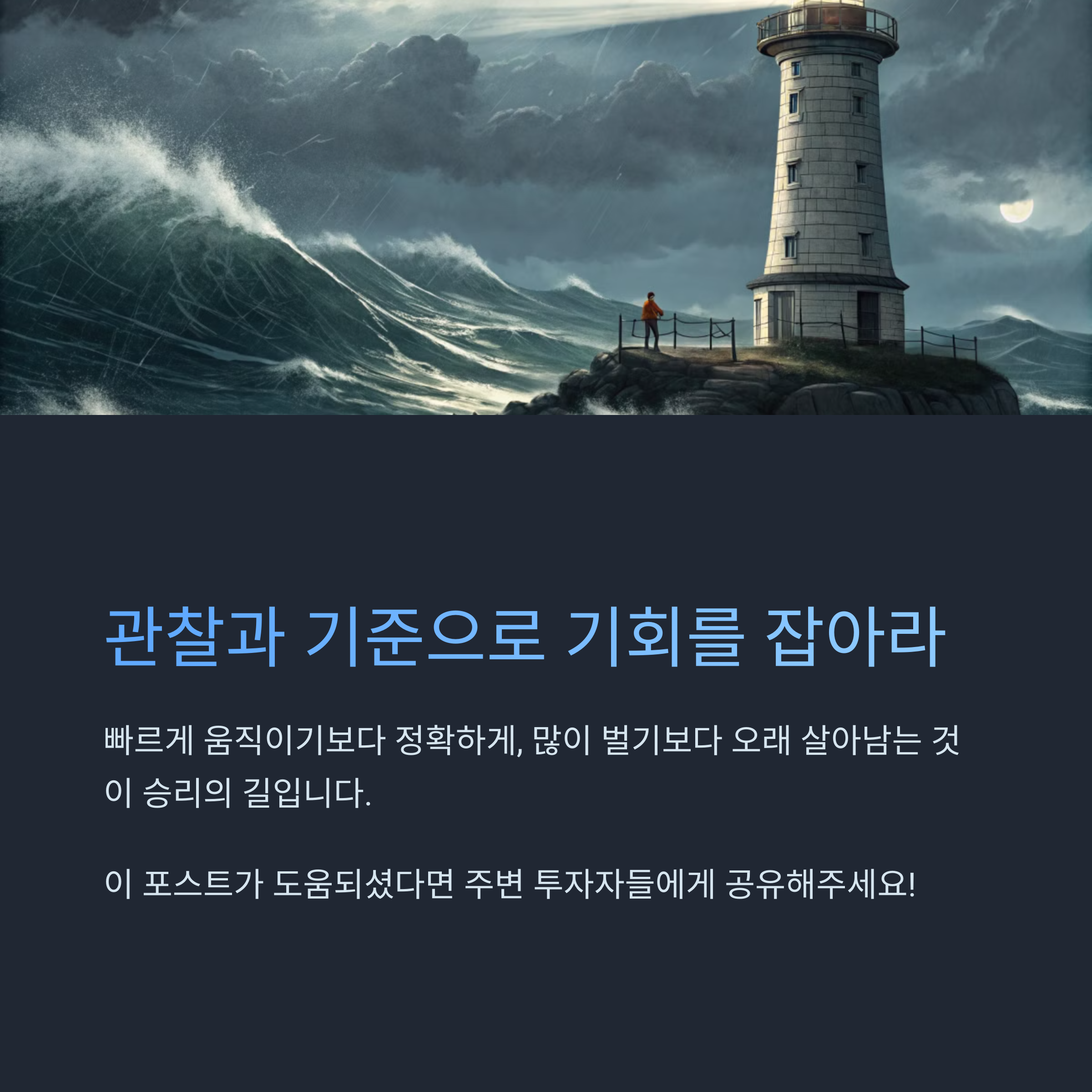우리의 대응은 바로 '관찰'과 '기준'. 이 두 가지를 잃지 않고 시장을 대한다면 어떤 변화도 기회로 만들 수 있을 거예요.