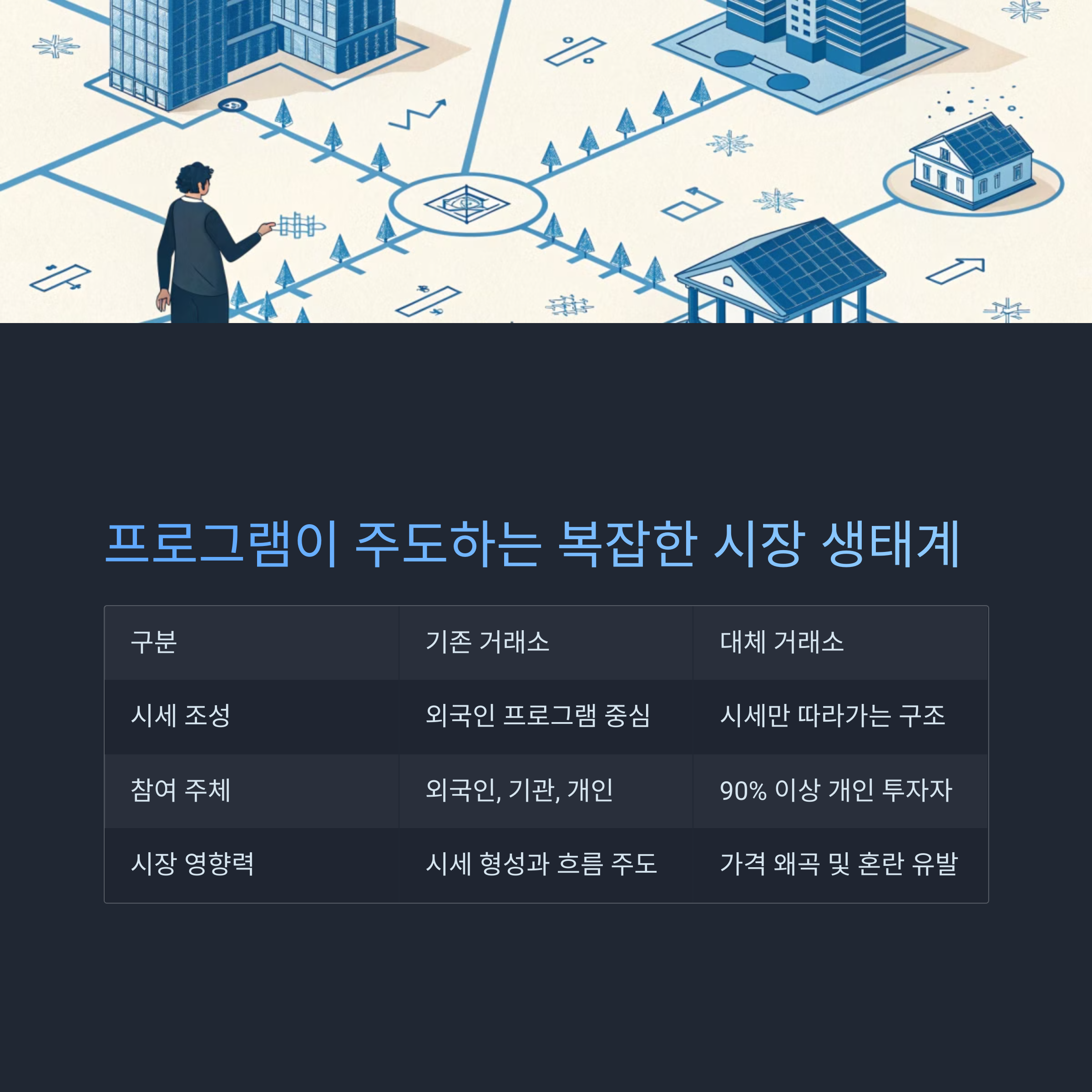 대체 거래소가 잘못된 방향으로 간다면, 결국 외국인도, 프로그램도, 우리도 모두 타격을 입을 겁니다.