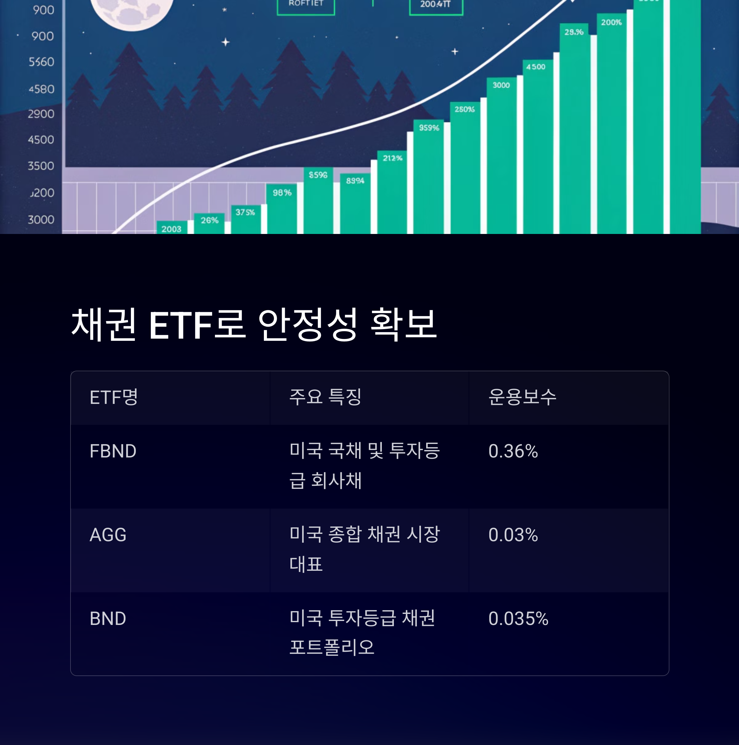 시장 변동성이 커지는 상황에서는 채권 ETF가 포트폴리오 안정화에 중요한 역할을 합니다. 특히 투자 등급 미국 채권을 포함하는 코어 채권 ETF들은 장기적인 방어 전략으로 활용될 수 있습니다.