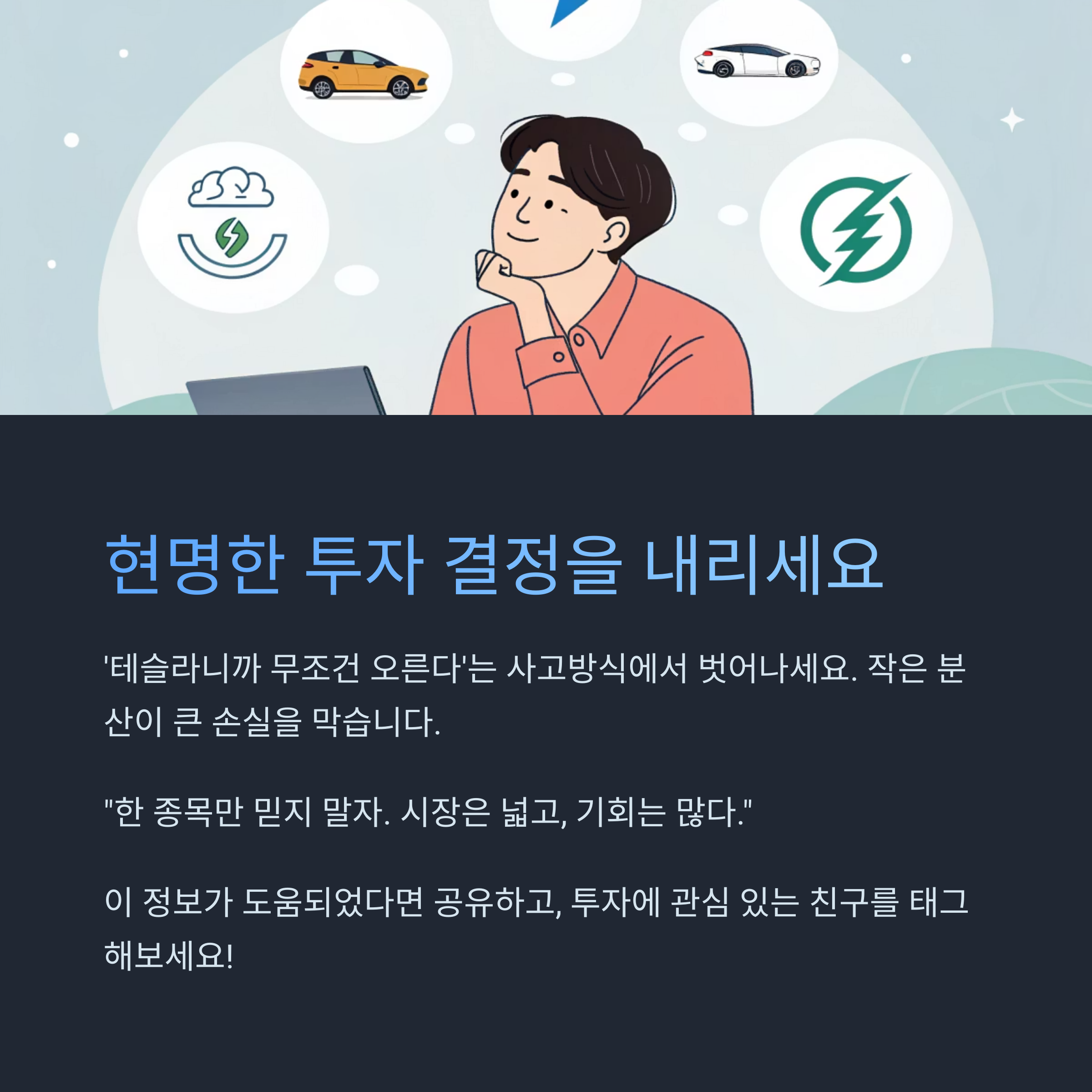 테슬라가 전기차 시장의 핵심임은 부정할 수 없지만, 오직 하나의 종목에만 의존하는 전략은 너무 위험합니다.