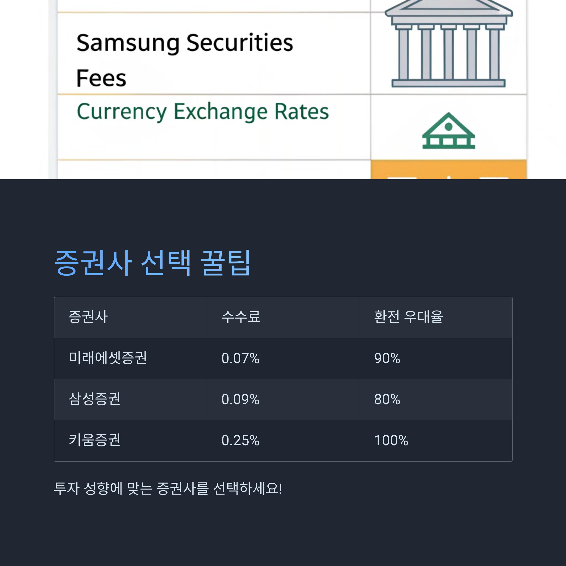 증권사마다 수수료, 환전 우대율, 인터페이스가 다 다르기 때문에 본인 투자 성향에 맞게 고르는 게 중요해요.