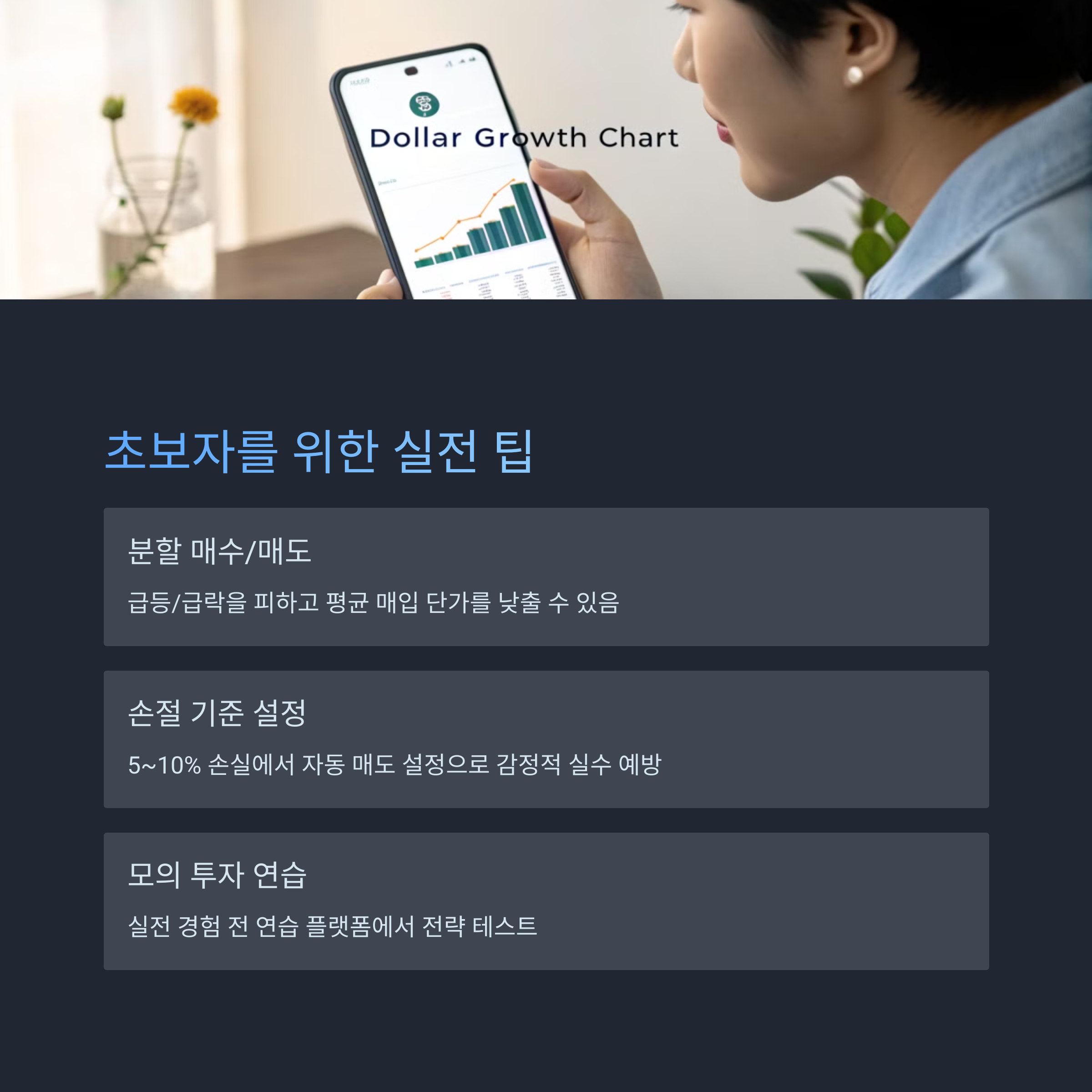 | 손절 기준 설정 | 5~10% 손실에서 자동 매도 설정으로 감정적 실수 예방 |
