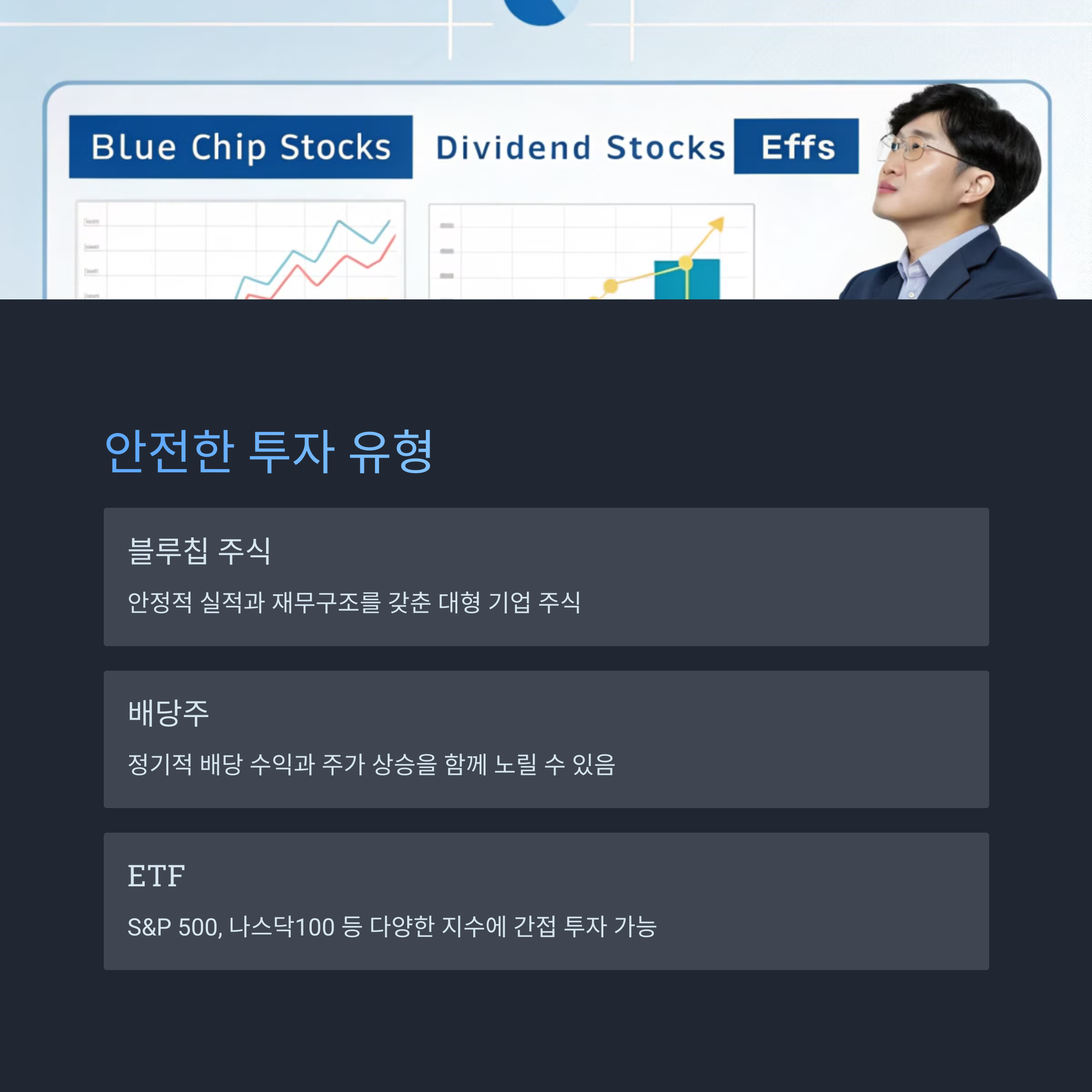 | 블루칩 주식 | 안정적인 실적과 재무 구조를 갖춘 대형 기업 주식 |