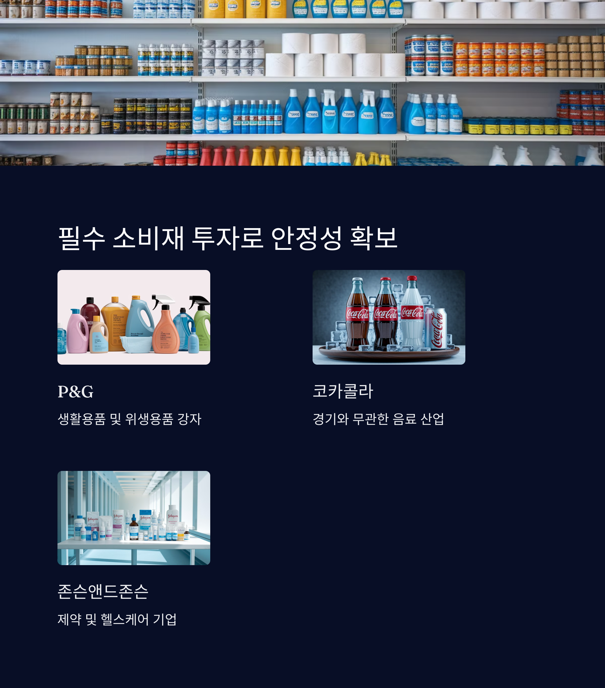 따라서 필수 소비재 기업에 투자하면 안정적인 수익을 기대할 수 있습니다.