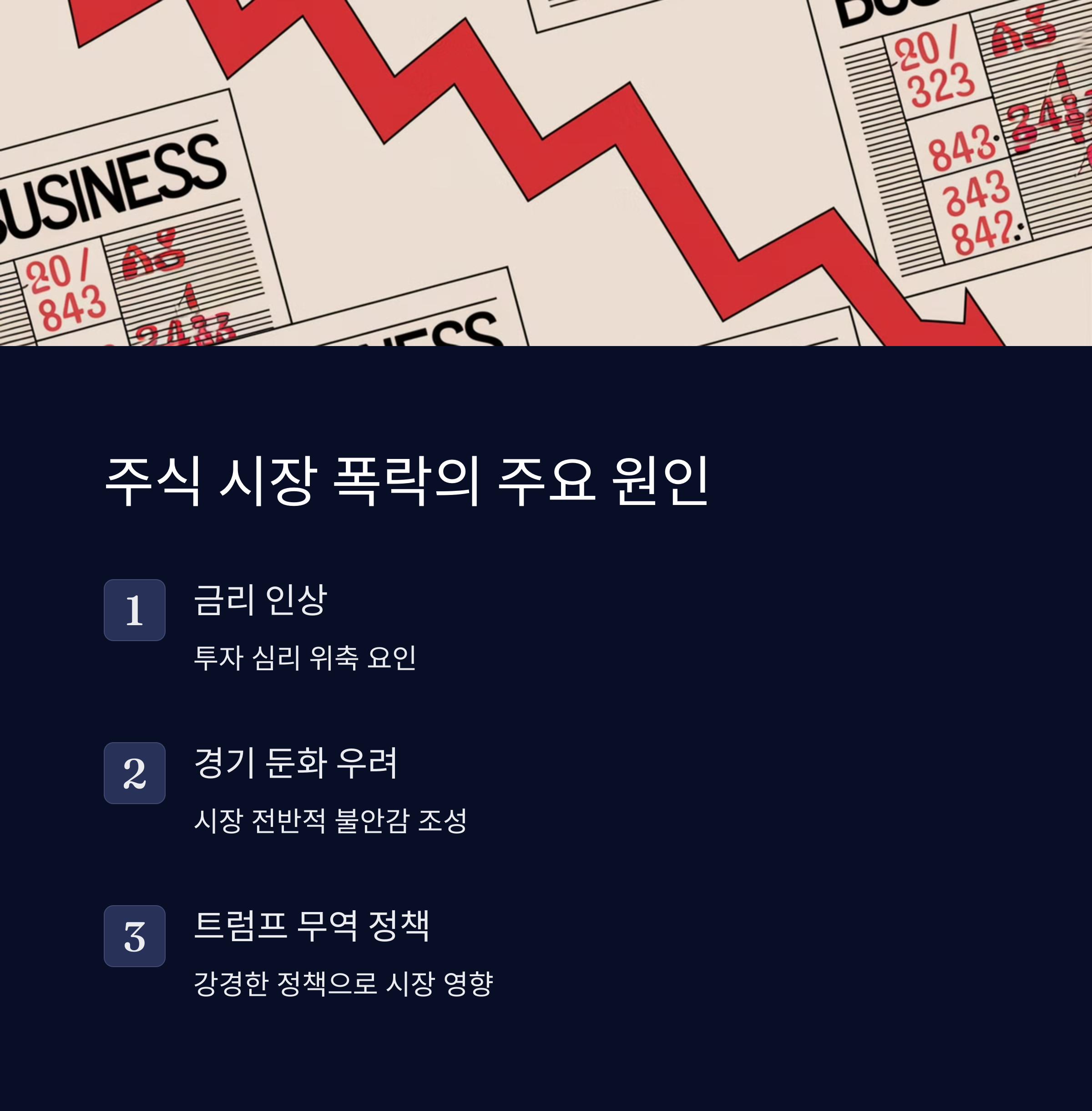 "미국 증시가 급락하며 투자자들의 우려가 커지고 있습니다. 폭락의 원인은 무엇이며, 지금 어떤 대응 전략이 필요할까요?"