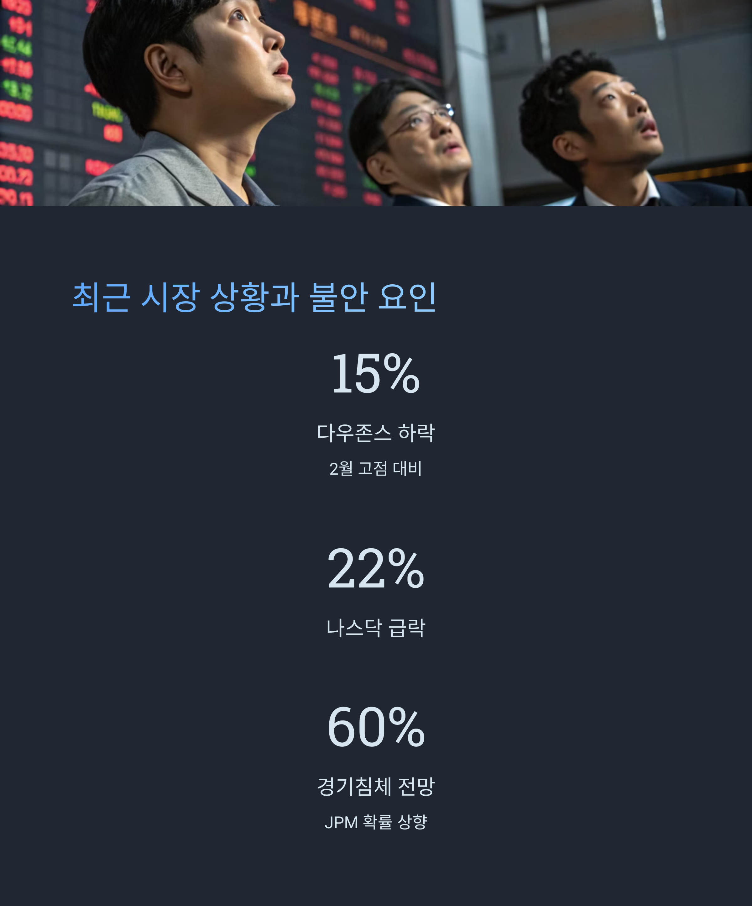| 4월 4일 하루 낙폭 | 다우 -2,200pt, S&P500 -6% |