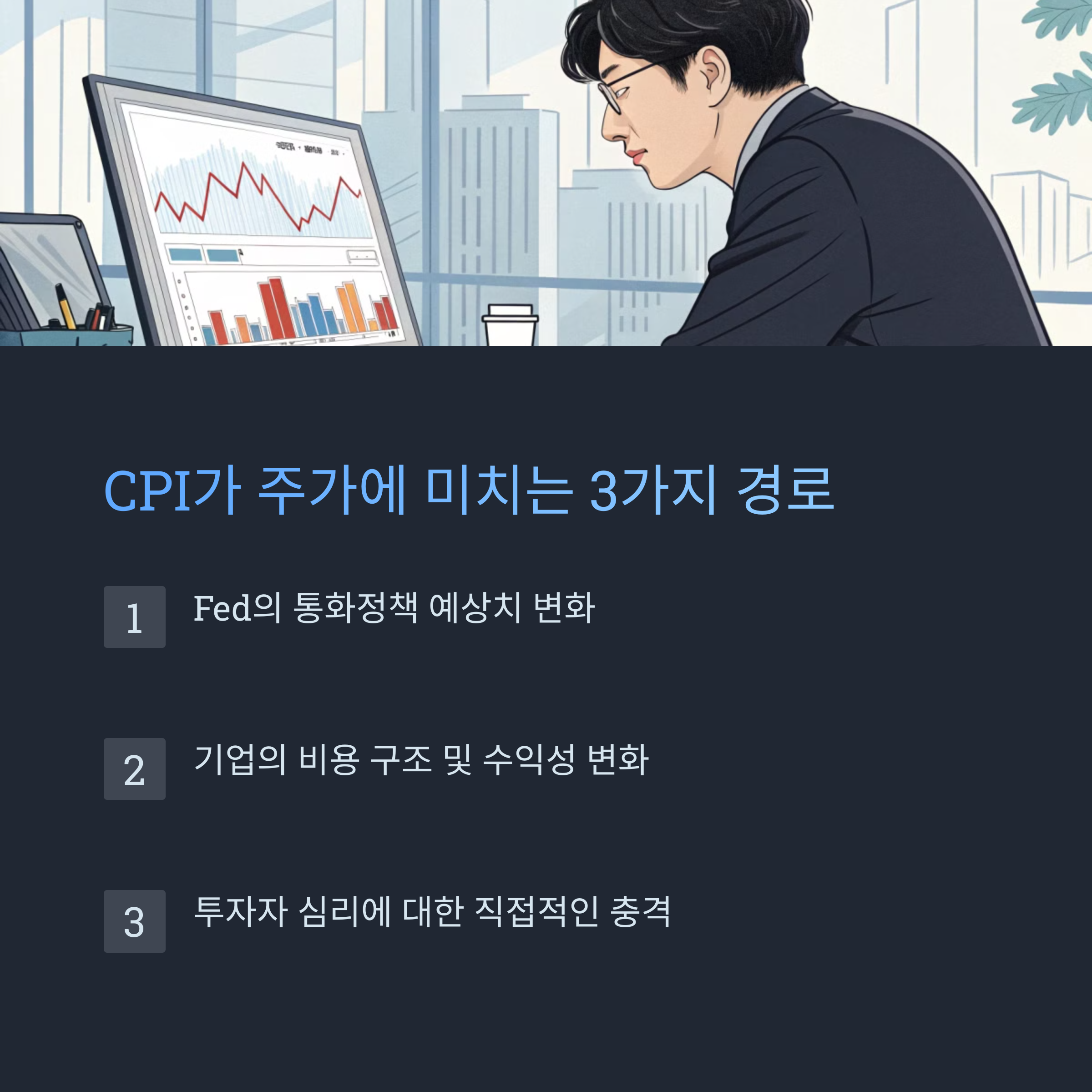 왜 그럴까요? 크게 세 가지 경로를 통해 CPI가 주가에 영향을 미치기 때문이죠.