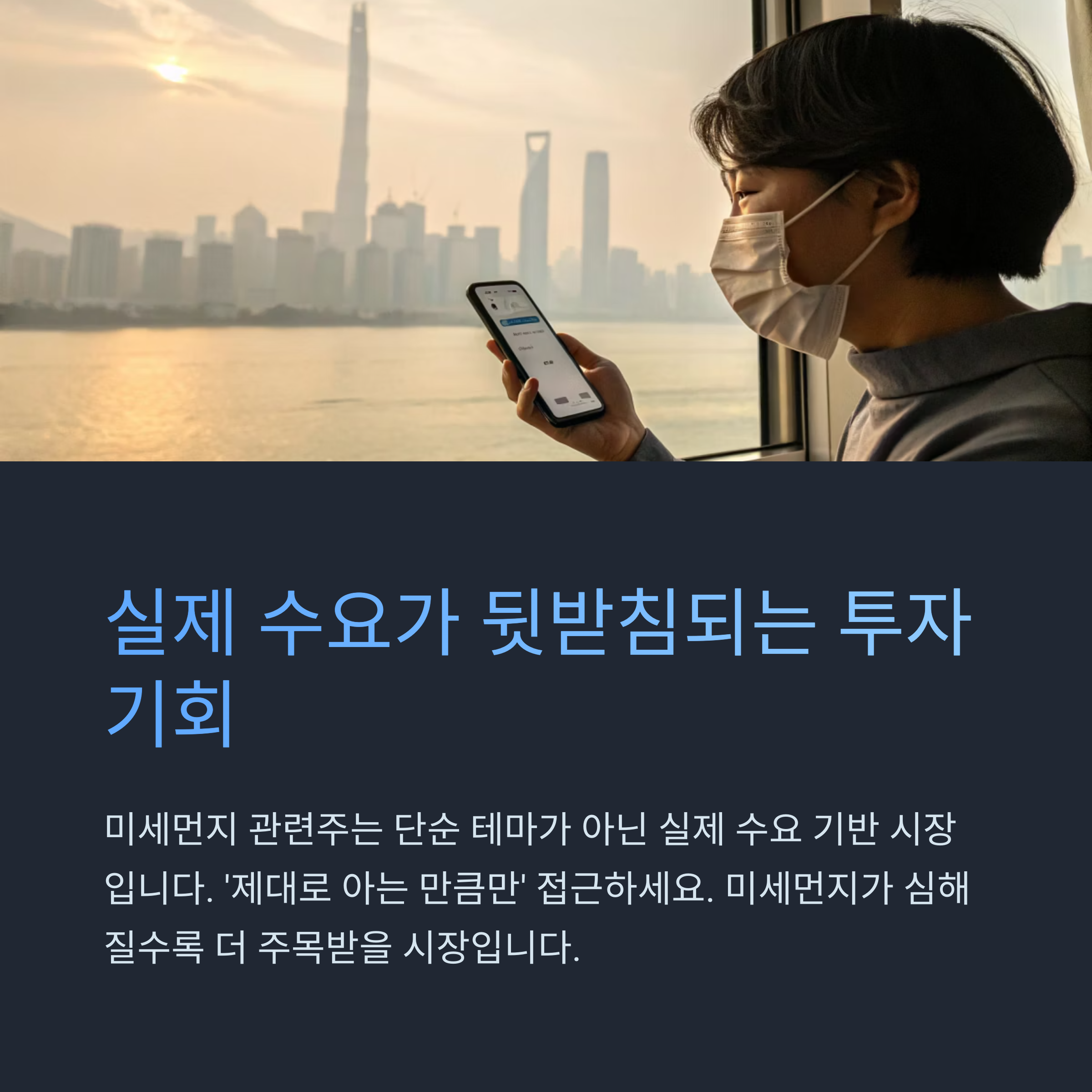 한 가지 확실한 건, 미세먼지가 심해질수록 이 시장은 더 주목받을 거란 점이에요.