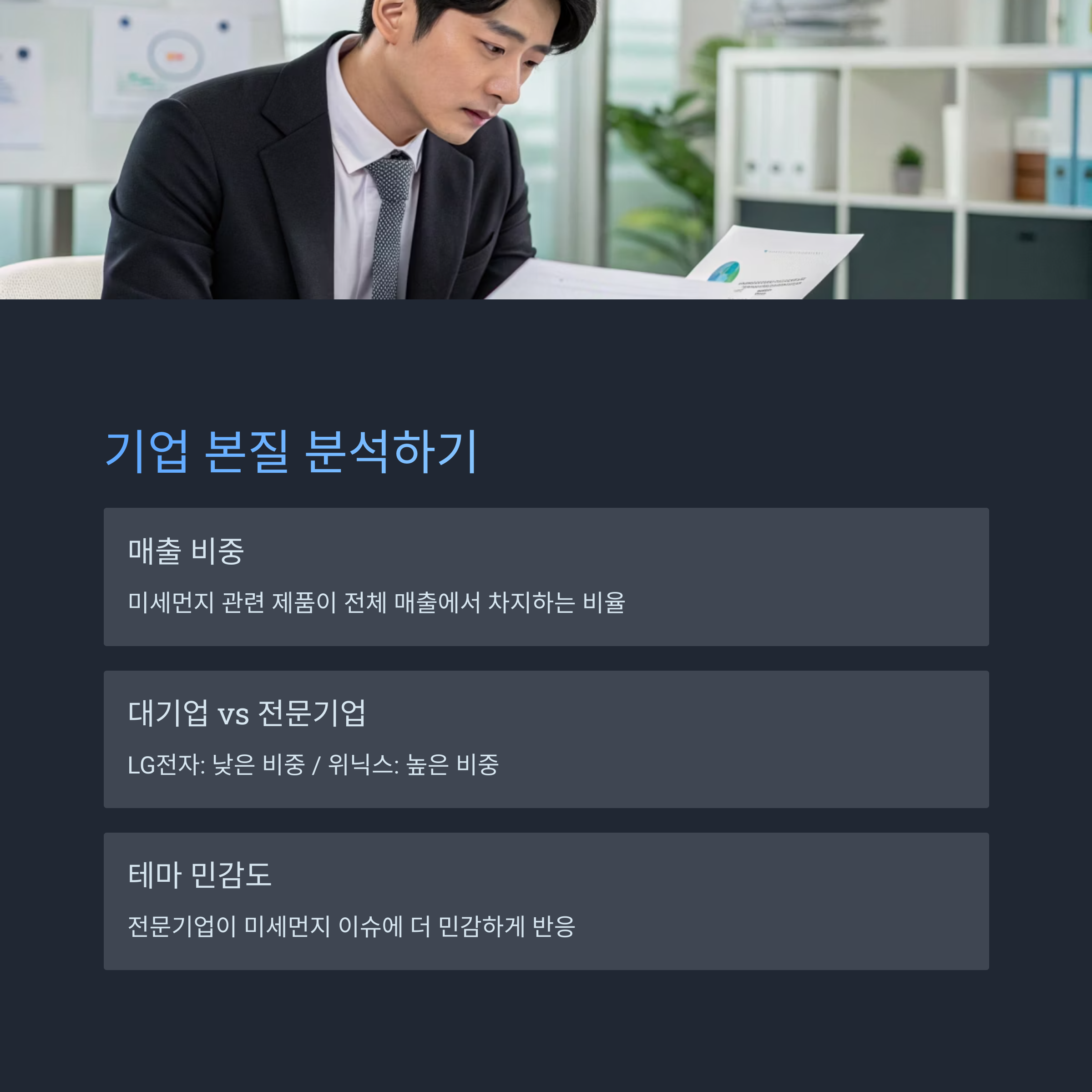 '실제 매출에서 미세먼지 관련 제품이 얼마나 차지하는가?'가 핵심이죠.