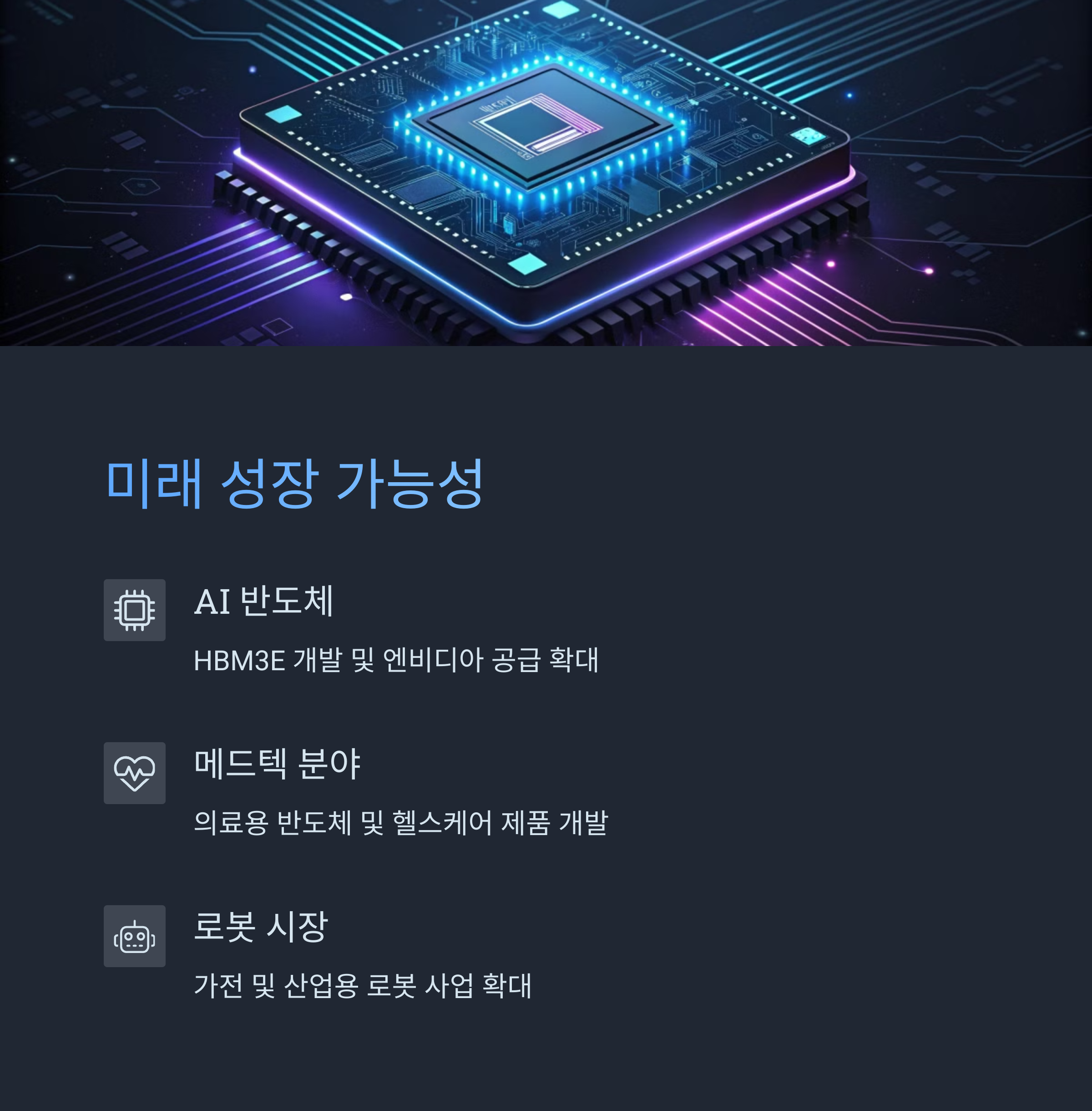 특히 AI 반도체, 메드텍(의료 기술), 로봇 등 여러 산업에서 새로운 기회를 모색하고 있습니다.