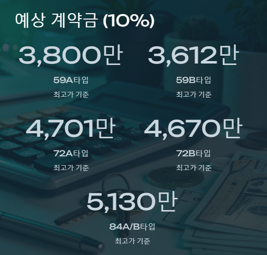 청약을 넣기 전에 가장 중요한 건 자금 계획이죠? 보통 분양가의 10%를 계약금으로 준비해야 하는데요, 내가 원하는 평형의 계약금이 대략 얼마인지 계산해 볼까요?