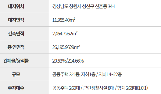 먼저 이 아파트가 어디에, 어떻게 지어지는지 기본 정보부터 확인해 볼게요. 위치는 창원시 성산구 신촌동 34-1번지 일원입니다.