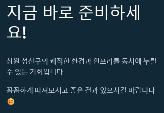 오늘 전해드린 성산 더리브 포레스트 분양 정보, 도움이 되셨나요? 창원 성산구의 인프라와 쾌적한 환경을 동시에 누릴 수 있는 기회인 만큼 꼼꼼하게 따져보시고 좋은 결과 있으시길 바랄게요! 더 궁금한 점이나 다른 분양 정보가 필요하다면 언제든 댓글로 남겨주세요~ 😊