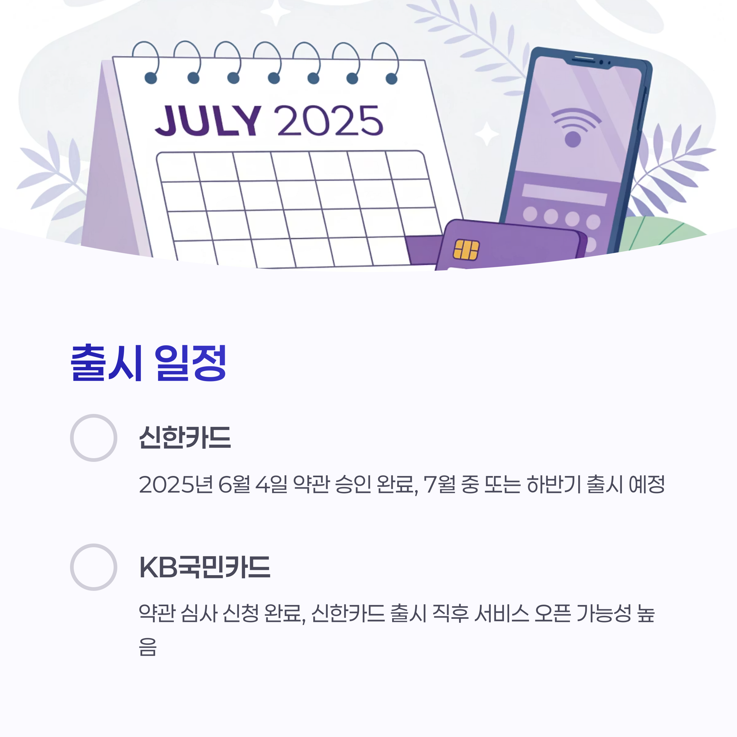 두 카드사의 출시는 이제 시간문제라는 생각이 듭니다.