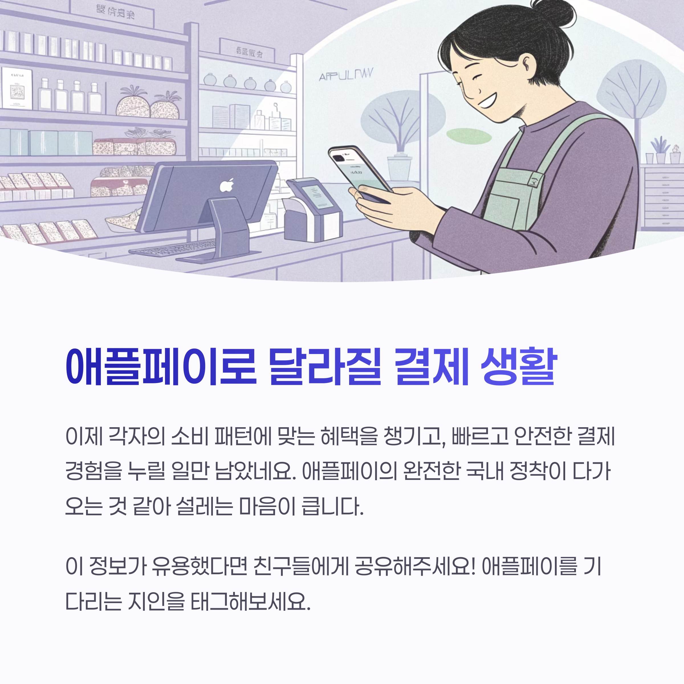 애플페이의 완전한 국내 정착이 다가오는 것 같아 설레는 마음이 큽니다.