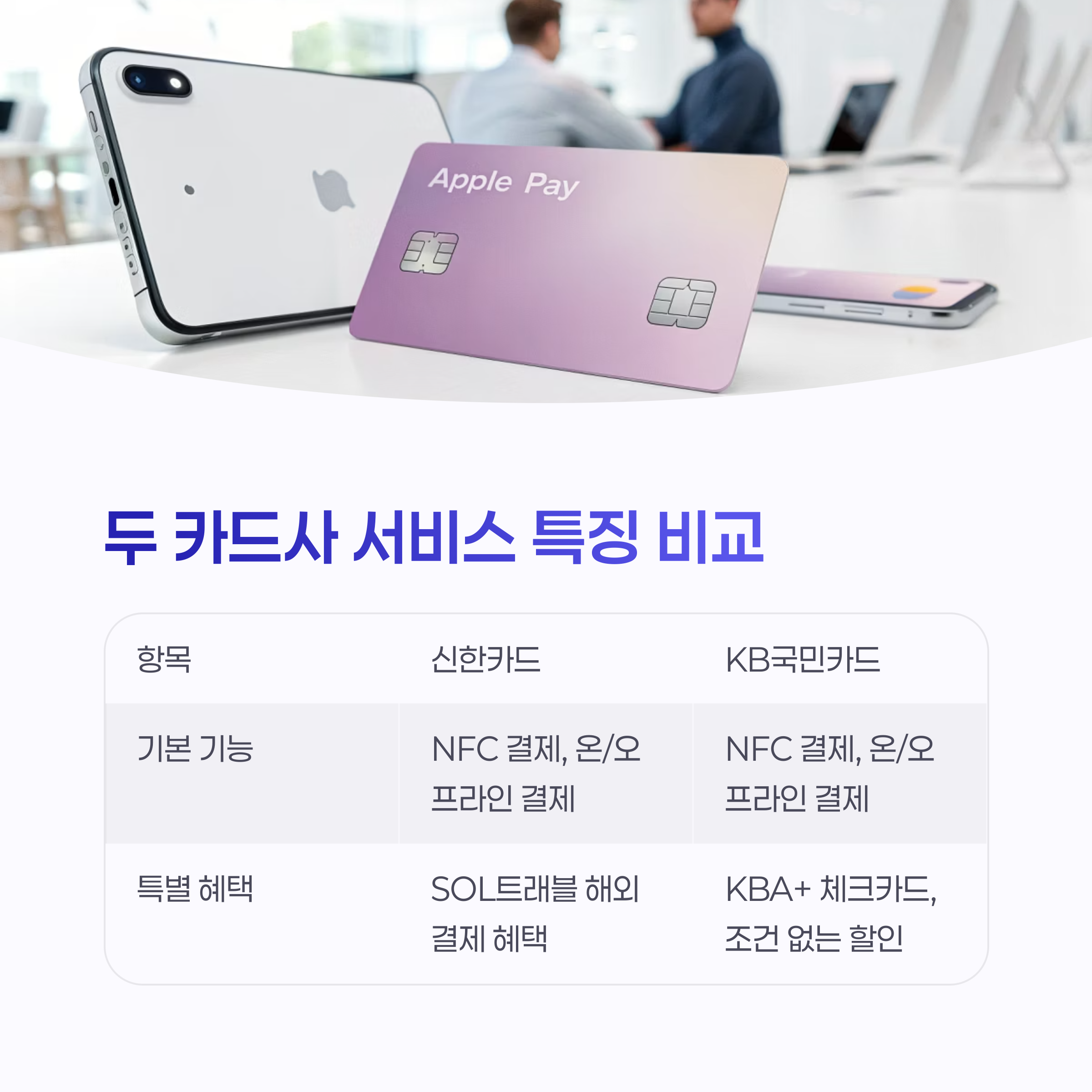 | 항목 | 신한카드 애플페이 | KB국민카드 애플페이 |