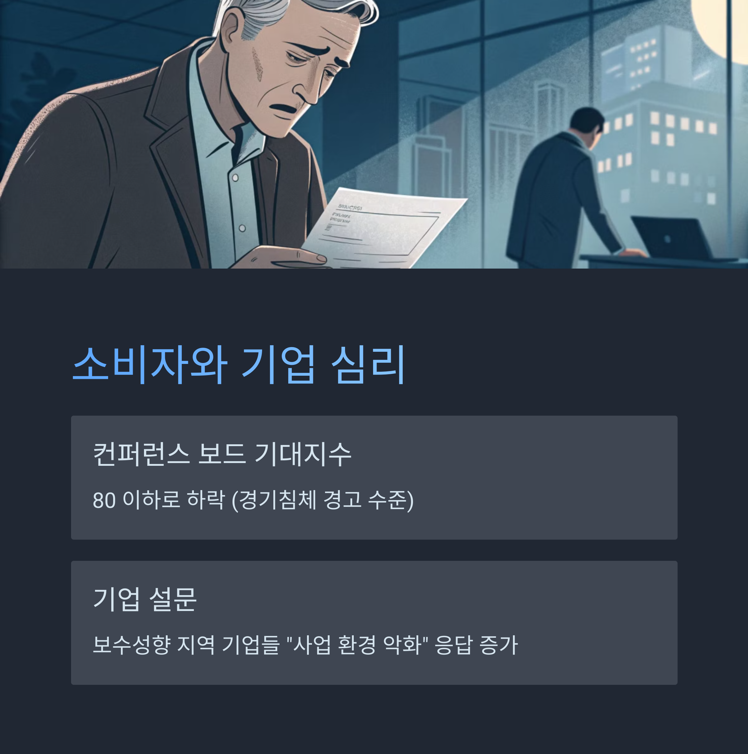 최근 소비자 신뢰도 지표가 떨어지고, 보수적인 지역의 기업들마저 "사업 환경이 나빠지고 있다"고 보고했어요.