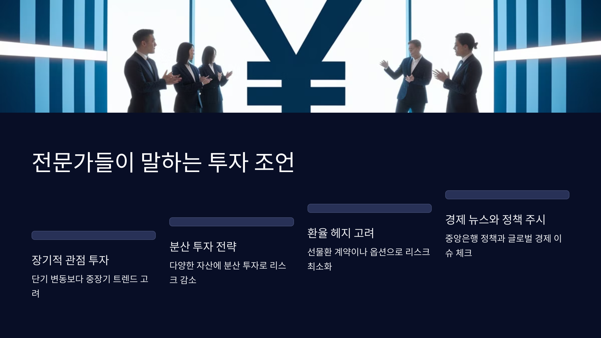 전문가들은 엔화 강세 시 투자자들에게 다음과 같은 조언을 하고 있습니다.