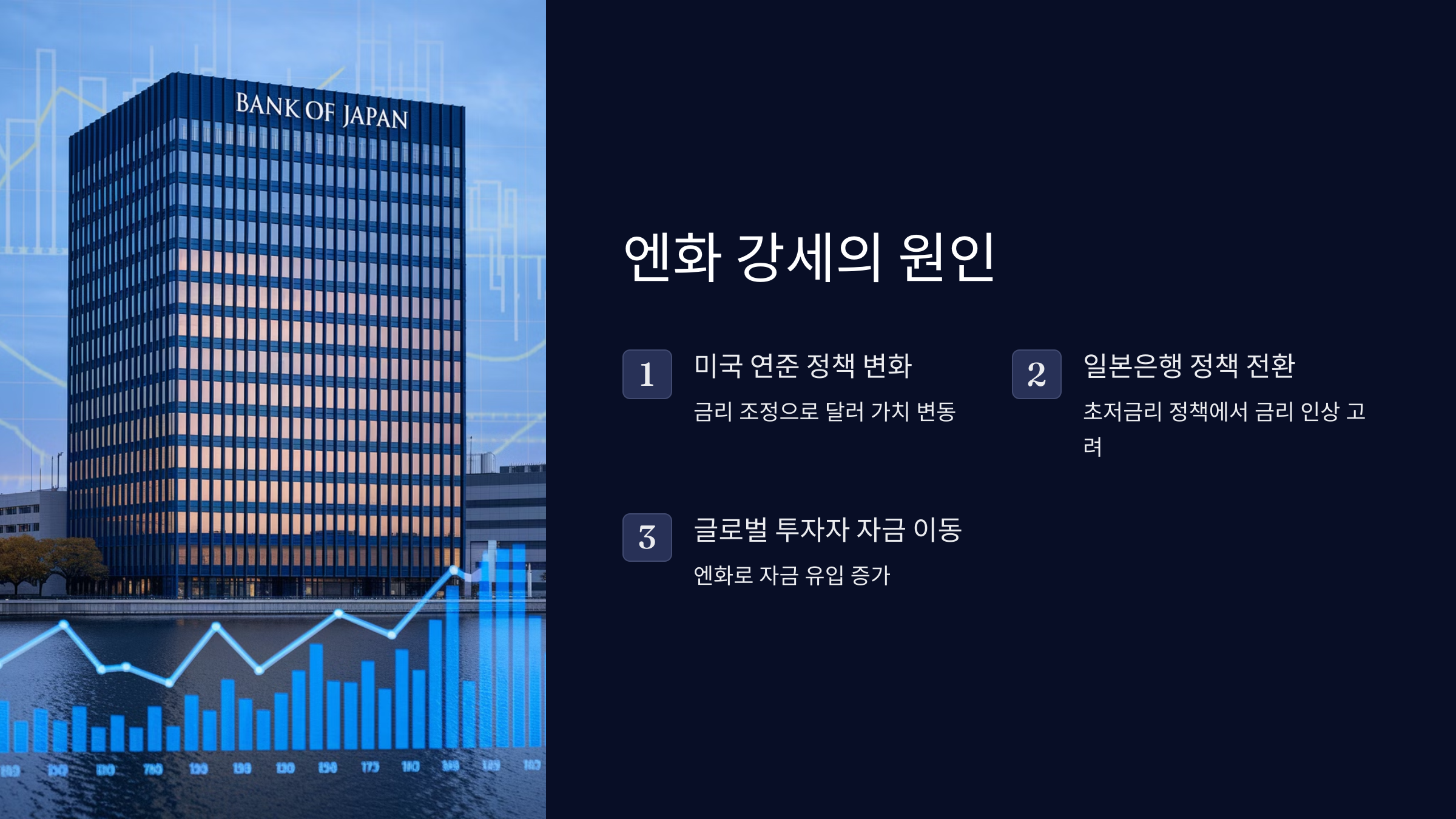 지금 엔화가 강세를 보이고 있습니다. 과연 이 기회를 잡아야 할까요? 투자자라면 반드시 체크해야 할 포인트를 정리해봤습니다.
