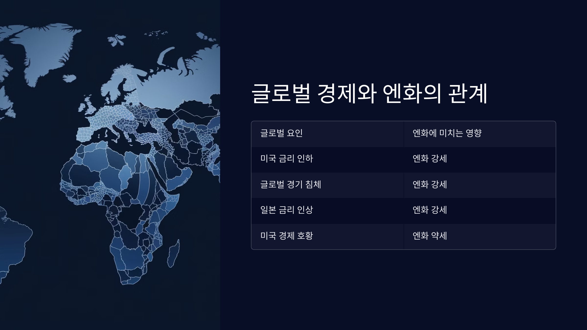 | 글로벌 요인 | 엔화에 미치는 영향 |