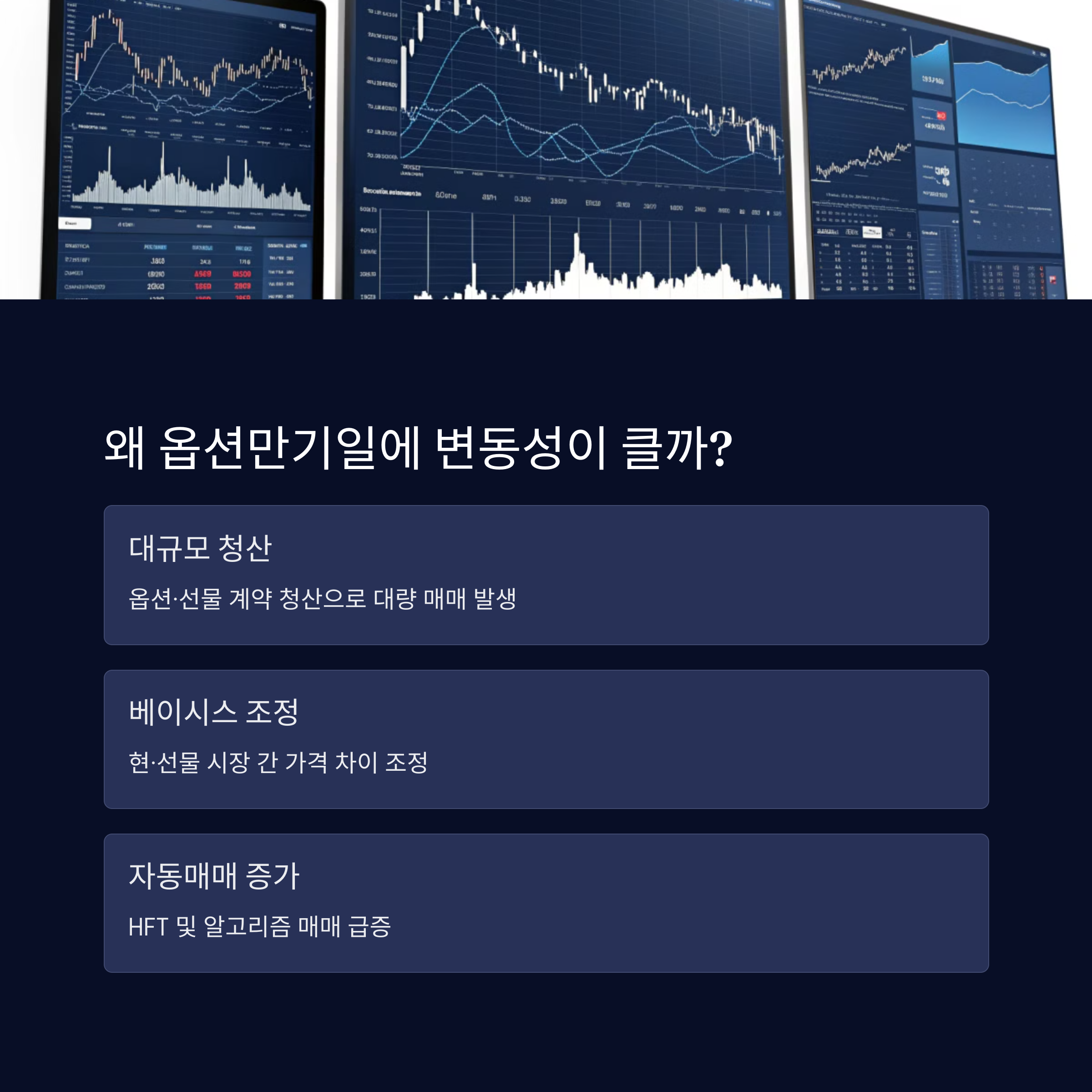 옵션만기일에는 다음과 같은 요인들이 변동성을 증가시키는 핵심 요소로 작용합니다.