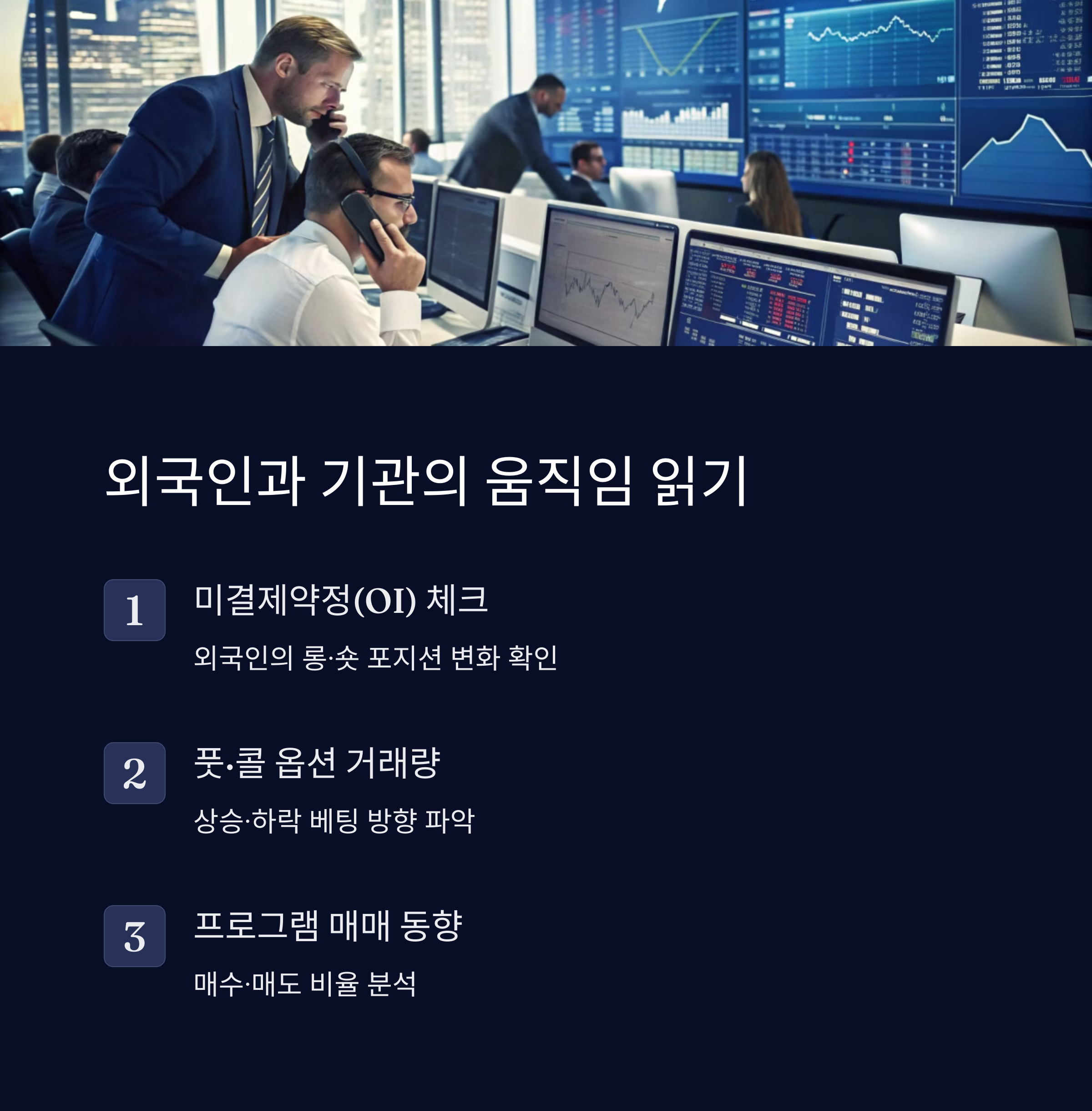 • 선물·옵션 미결제약정(OI): 외국인의 롱·숏 포지션 변화를 체크