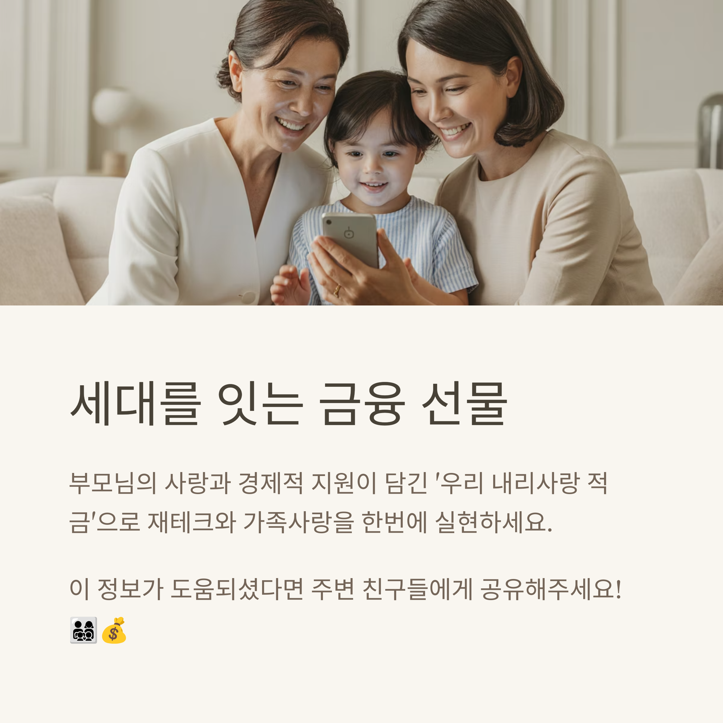 세대 간의 특별한 금융 선물로, 여러분의 재테크와 가족사랑을 한 번에 실현해보세요.