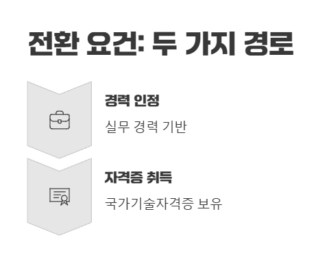 • 2. 경력 또는 국가기술자격증, 두 가지 전환 요건을 확인하세요.