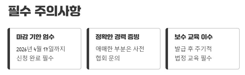 이 부분도 놓치지 않고 챙기셔야 자격이 유지돼요.