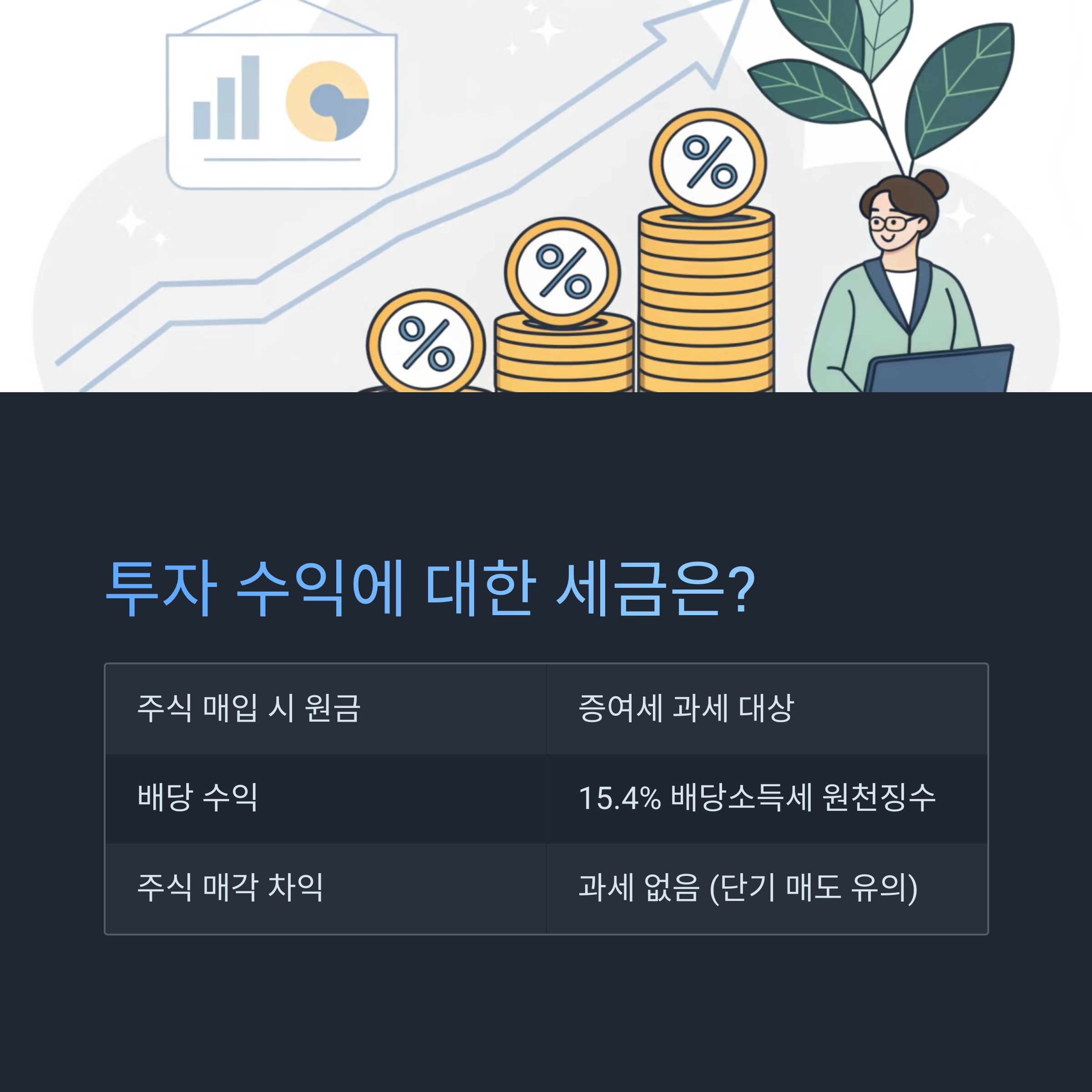 | 주식 매각 차익 | 과세 없음 (단기 매도는 유의) |