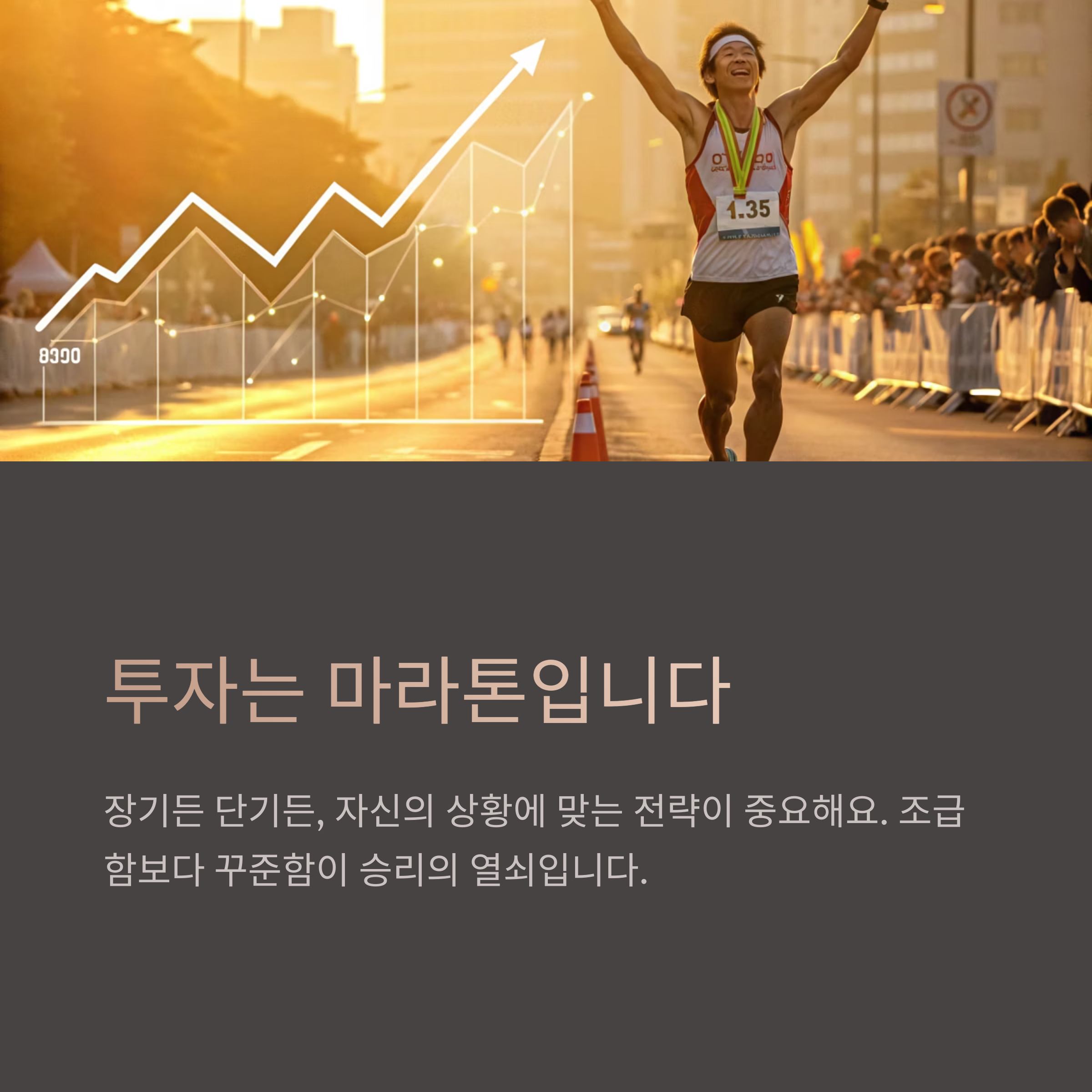 사실 투자는 마라톤 같거든요. 조급함보단 꾸준함이 중요하죠.