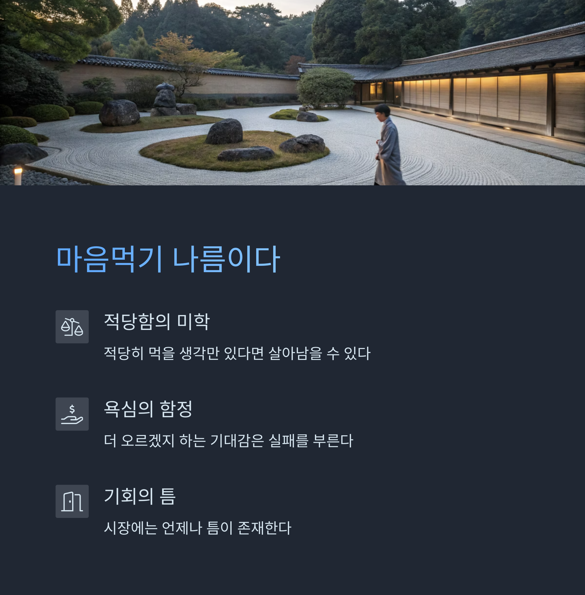 변화에 민감하게 반응하고, 관찰력을 키우며, ‘욕심’보다 ‘적당함’을 기준으로 매매하는 것.