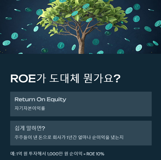 ROE는 기업의 '돈 버는 실력'을 보여주는 가장 정직한 숫자가 아닐까 싶어요.