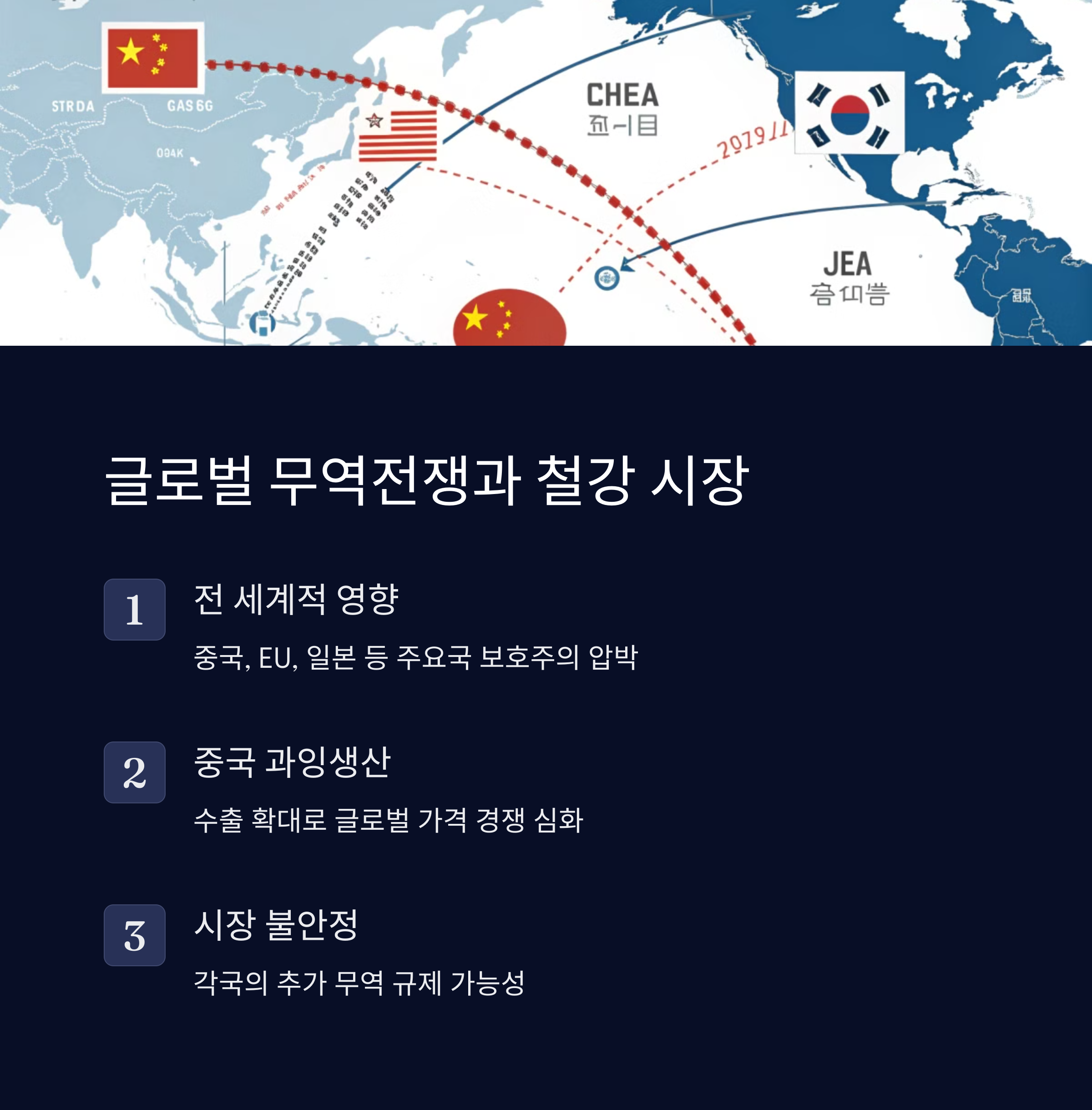 미국의 25% 관세 조치는 단순히 한국 철강업계에 국한된 문제가 아닙니다. 중국, 유럽연합(EU), 일본 등 다른 주요 수출국들도 철강 산업에 대한 보호주의 압박을 받고 있습니다. 이러한 상황에서 글로벌 철강 시장은 더욱 불안정해지고 있으며, 각국은 자국 산업 보호를 위해 추가적인 무역 규제를 도입할 가능성이 큽니다.